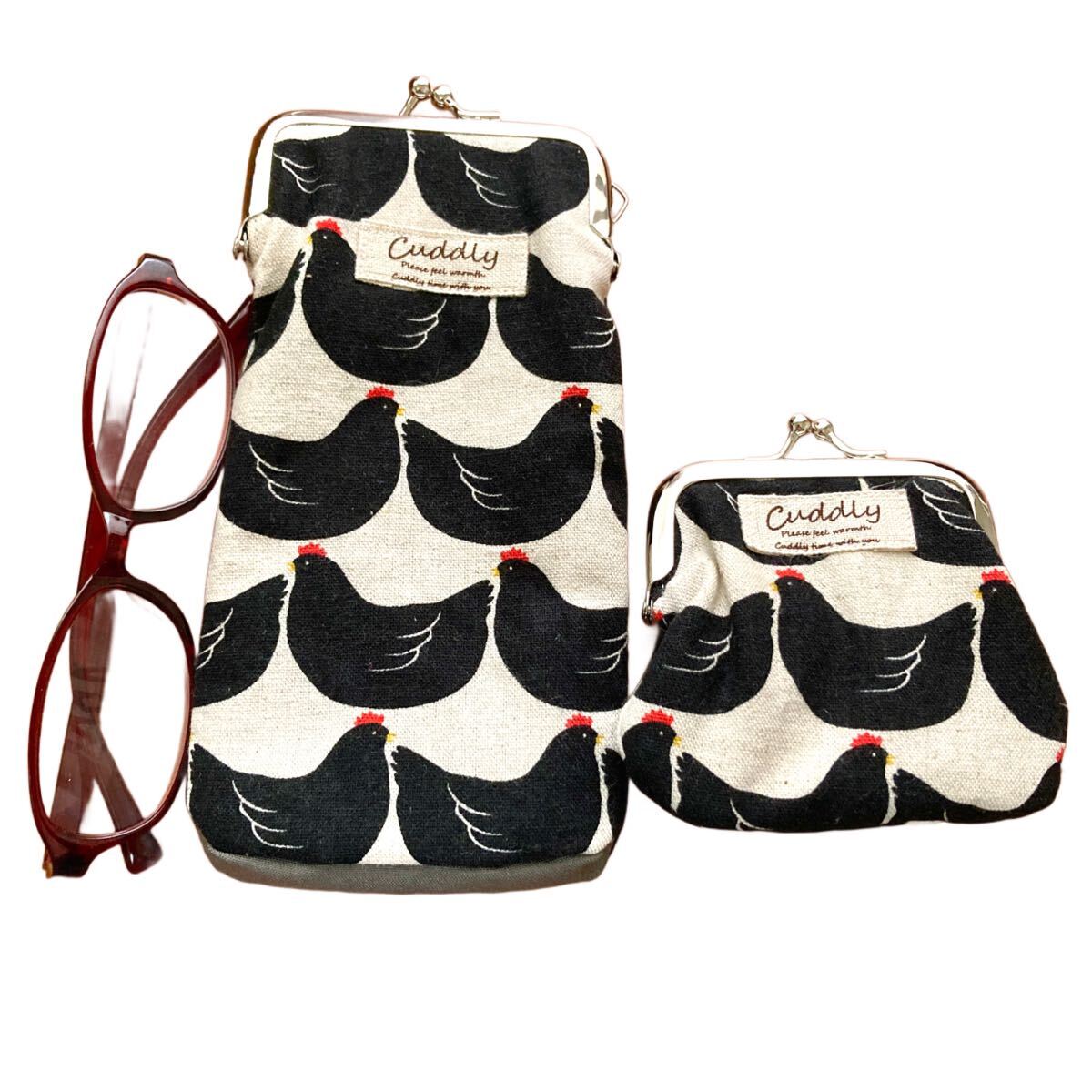 ハンドメイド 2個セット がま口ポーチ メガネケース 小銭入れ