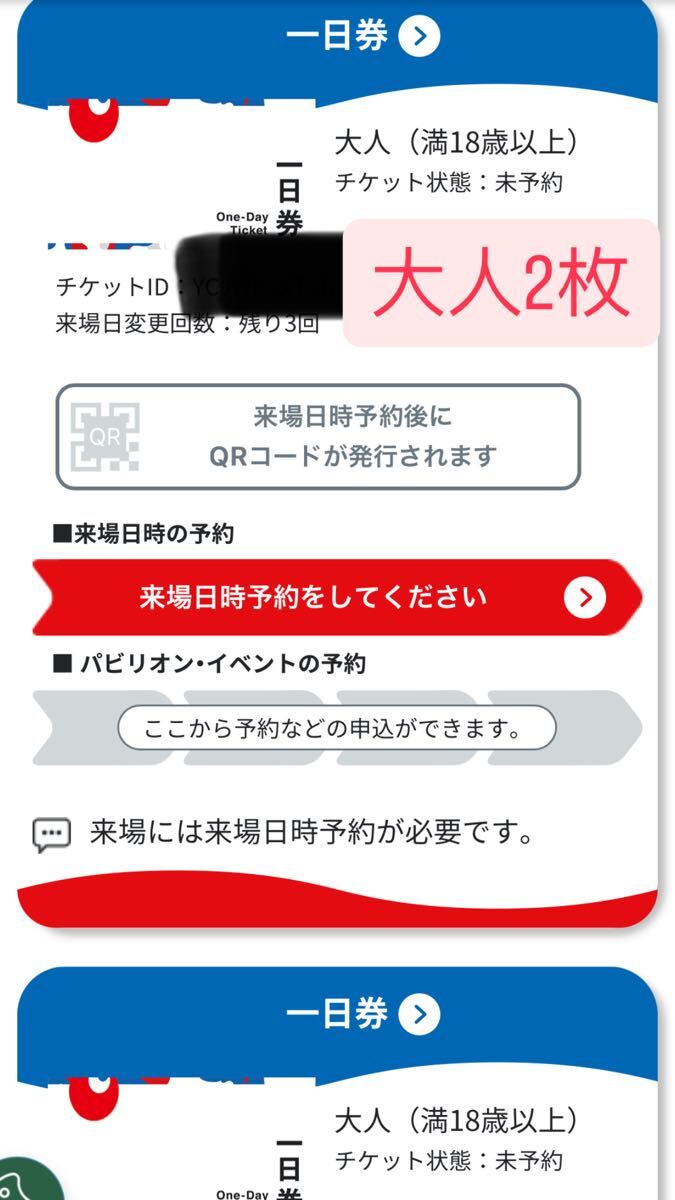 大人1日券 2枚