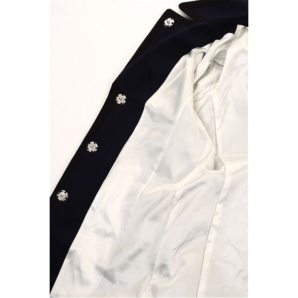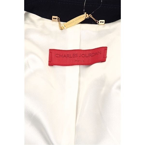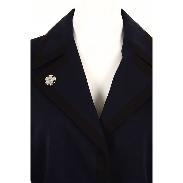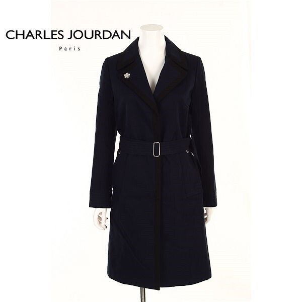A5517/極美品 秋冬 CHARLES JOURDAN シャルルジョルダン スナップボタン 銀ボタン チェスター ステンカラーコート 38程 M程 紺/レディース