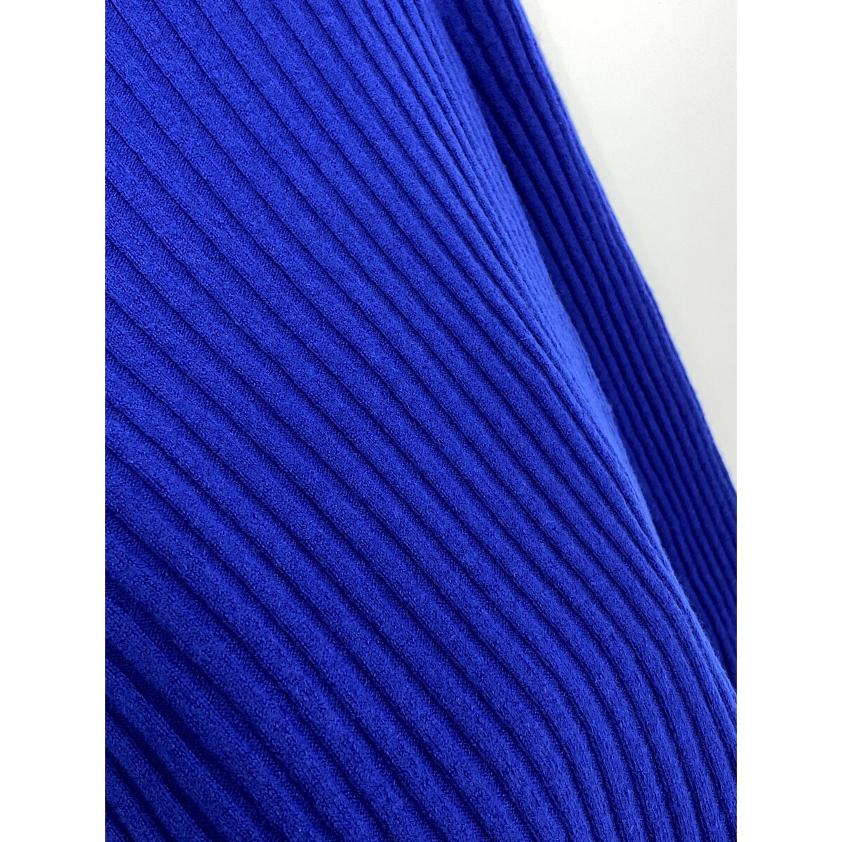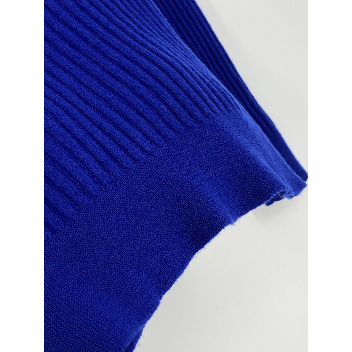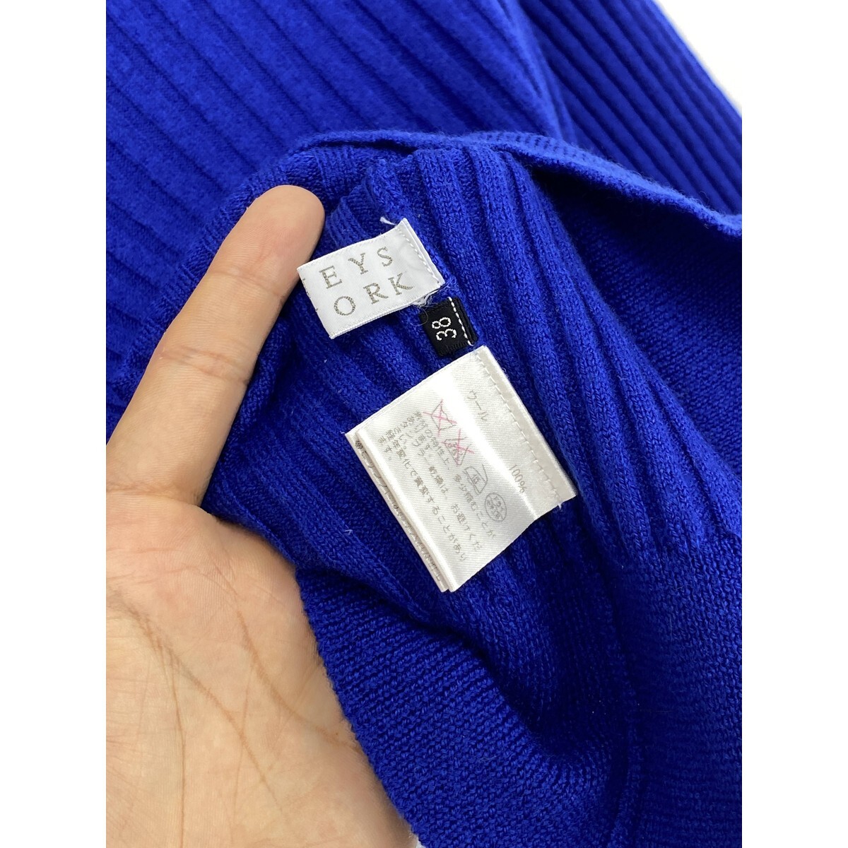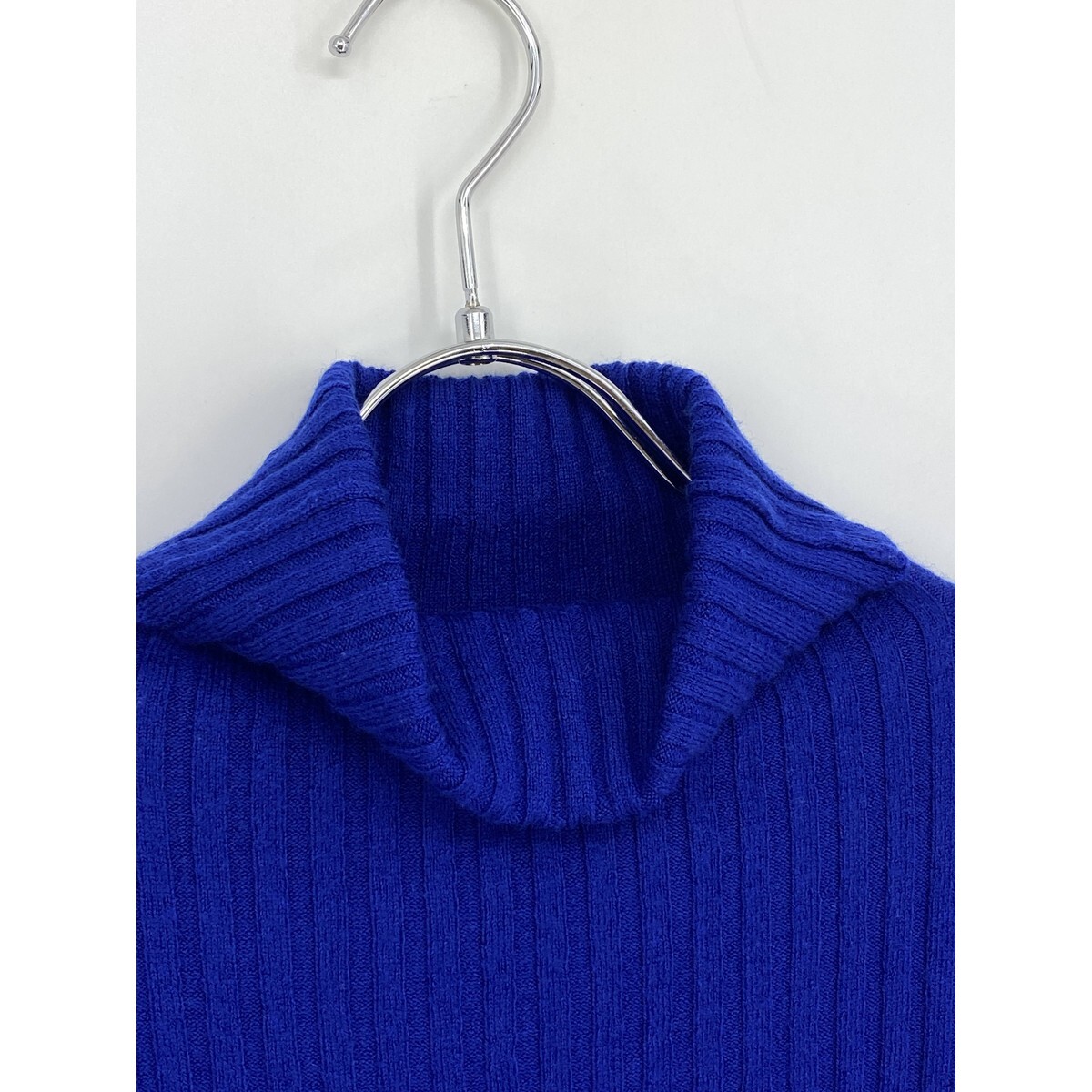 B0887/美品 BARNEYS NEWYORK バーニーズ ウール 無地 タートルネック 長袖 ニット リブ セーター 38 M程 青 レディース カーディガン