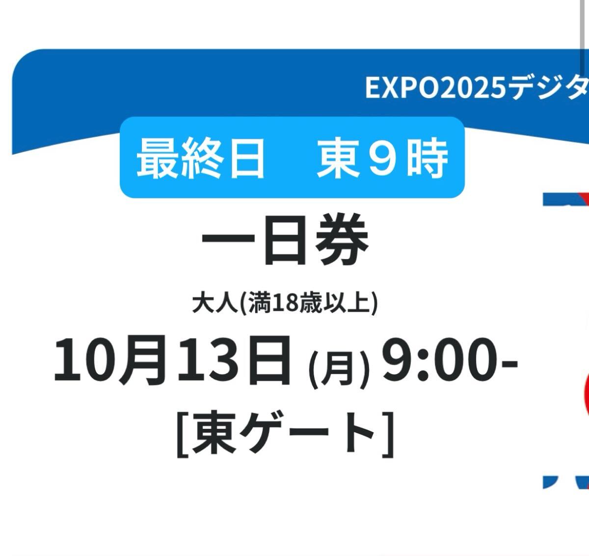 入場予約日時 10月13日(月・祝) 9時東ゲート