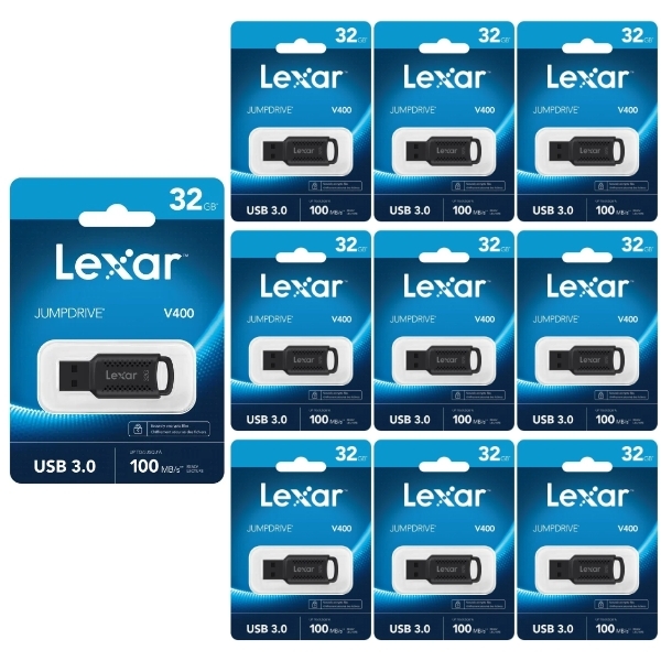 「10本セット」USBメモリ 32GB USB3.0 キャップレス Lexar LJDV400032G-BNBNG
