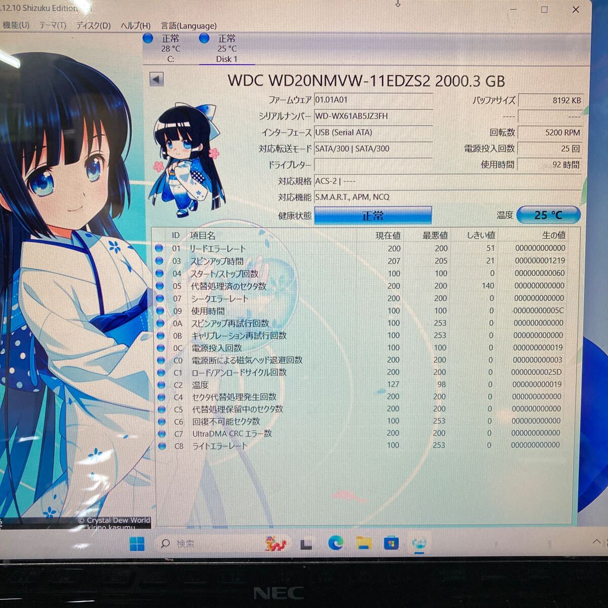 Crystaldiskinfoにて【正常】と判定されました。