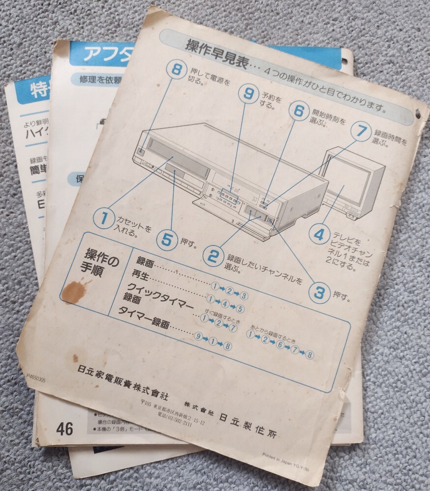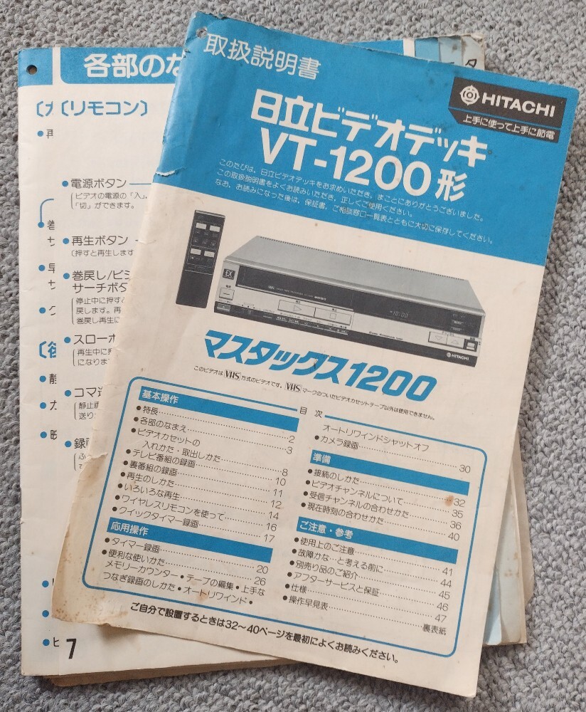 日立VHSビデオデッキの”取扱説明書”のみです。マスタックスVT-1200 送料込み