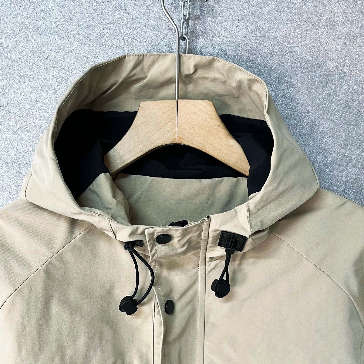 シンプルな無地デザインは、幅広いコーディネートに対応可能。フード付き&立ち襟仕様で首元までしっかりカバーし、風の侵入を防ぎます。複数の大容量ポケットも備えており、スマートフォンや小物の収納にも便利です。