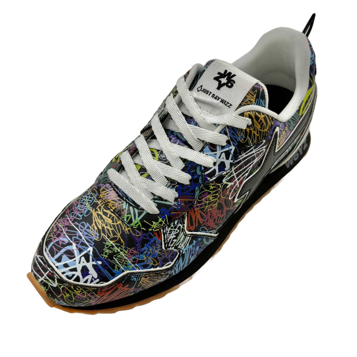 2024年JAPAN限定モデル。アッパーに施されたカラフルなグラフィック。ストリートカルチャーを感じさせる遊び心溢れるデザイン。テクニカルファブリックのアッパー。脚長効果のヒール高4cmのインソールを採用。超軽量ラバーソール。