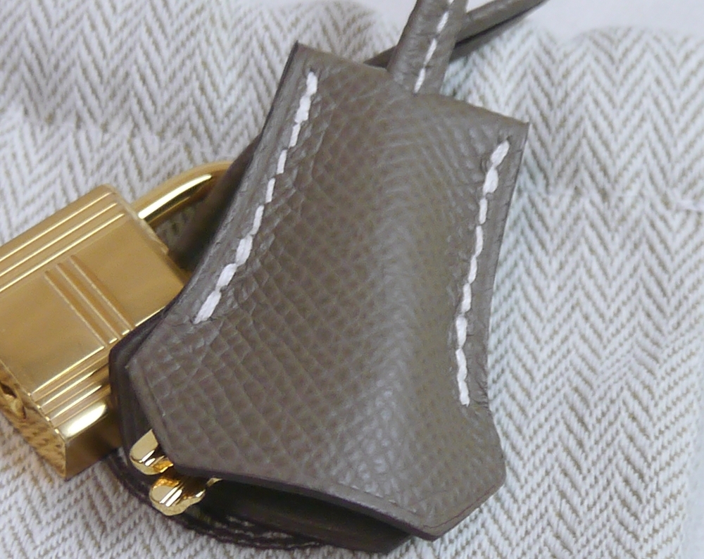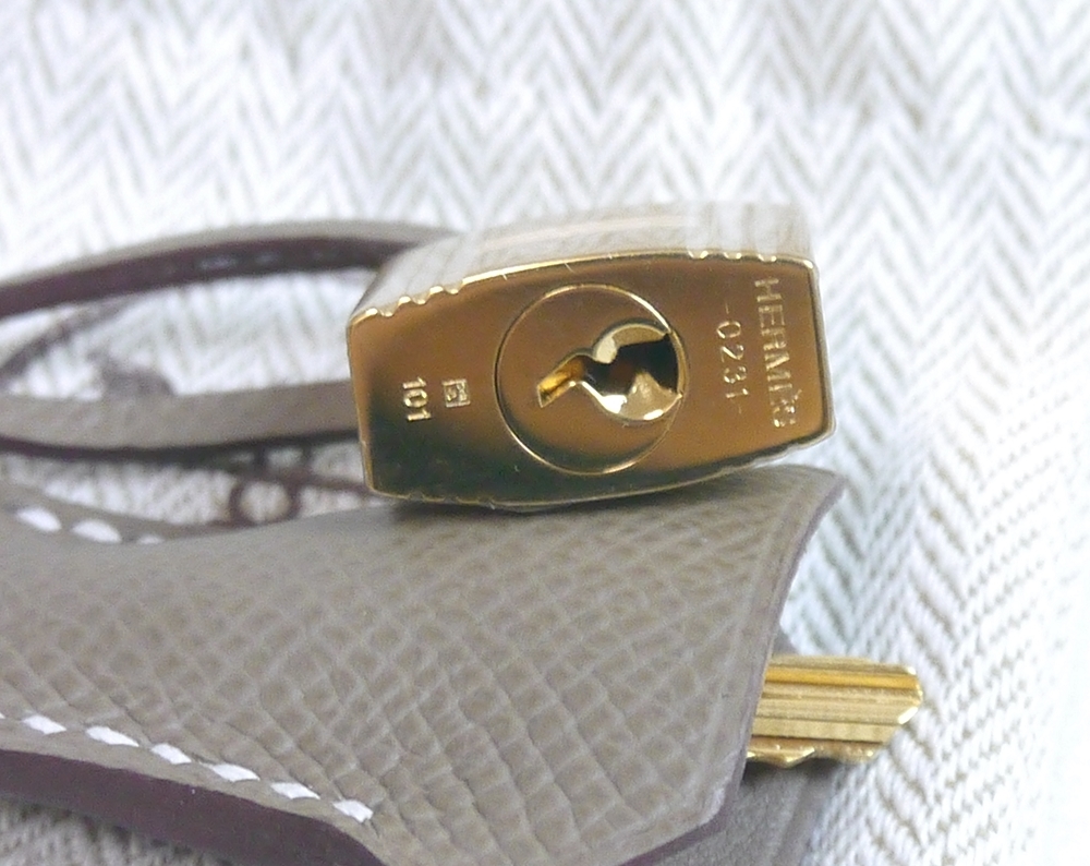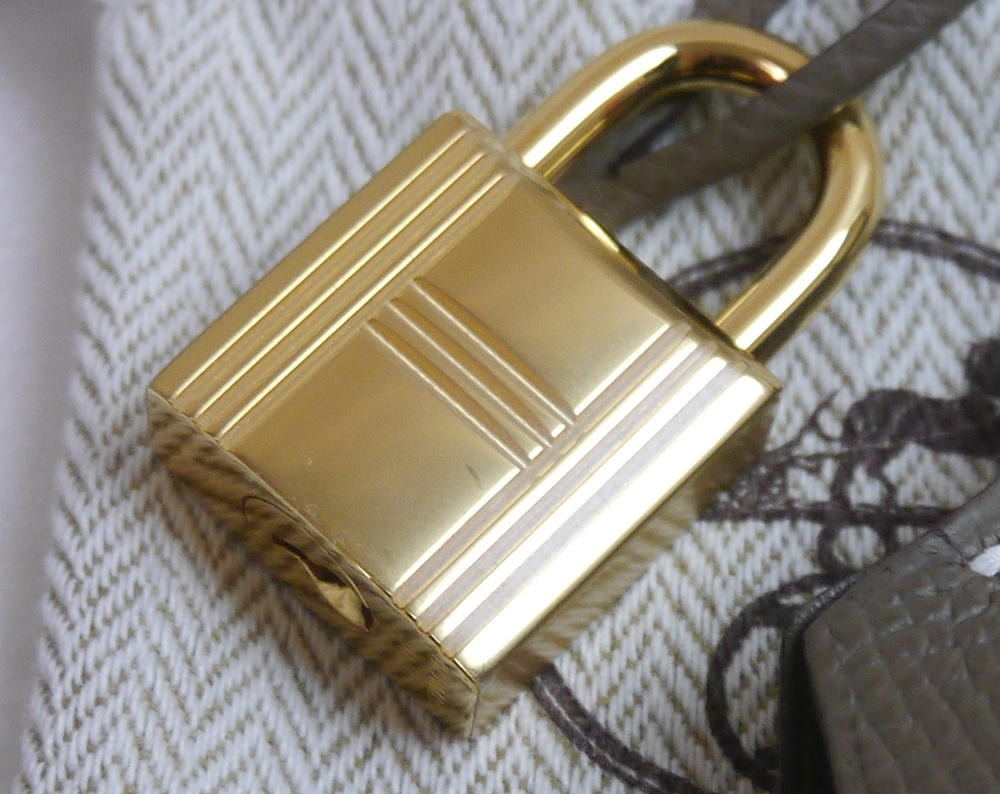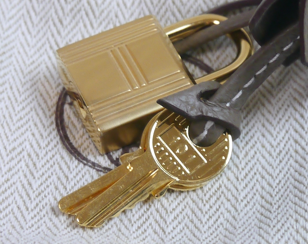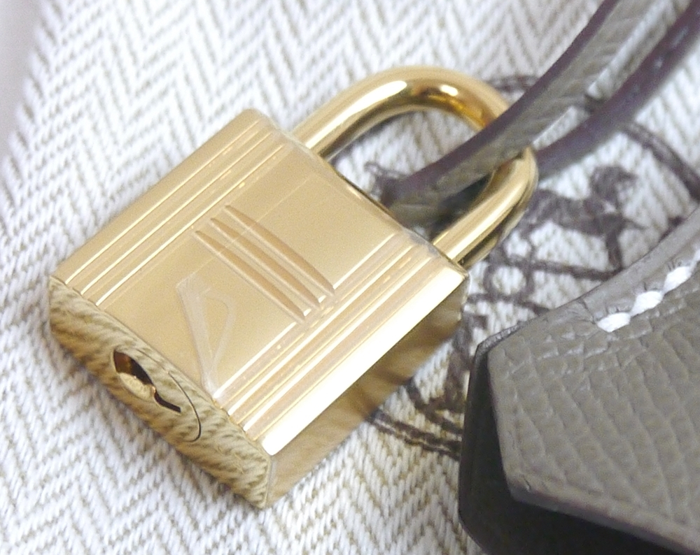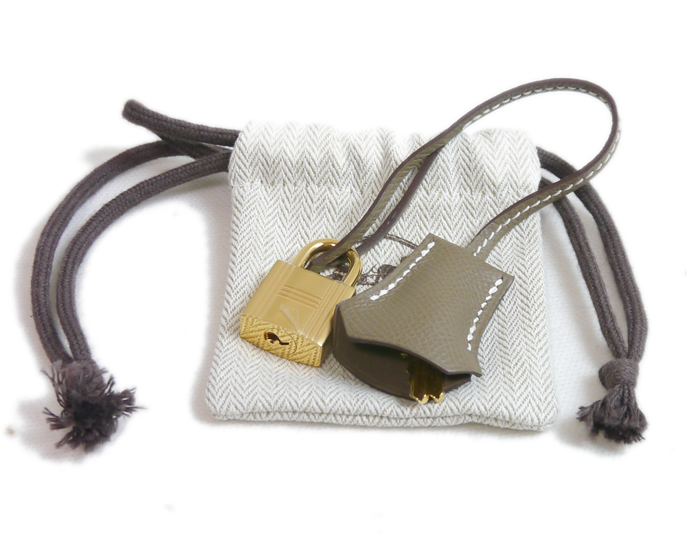 未使用保管品 エルメス クロシェット チャーム エトープ レザー カデナ 南京錠 ゴールド 保護フィルム付き