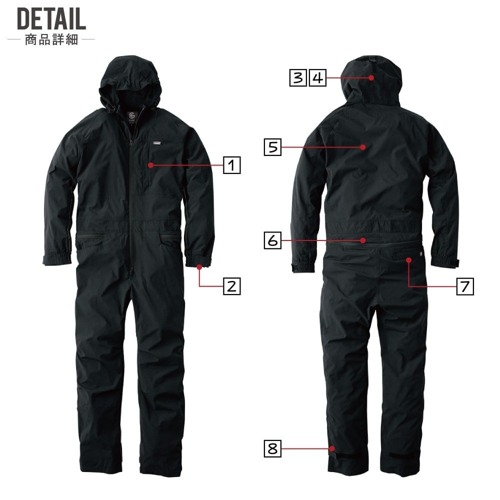 フード部がロール状に収納可能であったり、袖口や裾などの細かな機能も豊富。