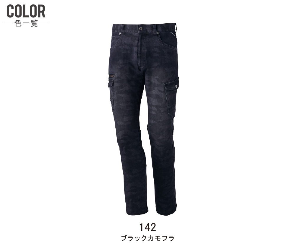 Z-DRAGON ジィードラゴン 秋冬 ストレッチ ノータック カーゴパンツ 伸縮性に優れたデニム素材 71602 色:ブラックカモフラ サイズ:106