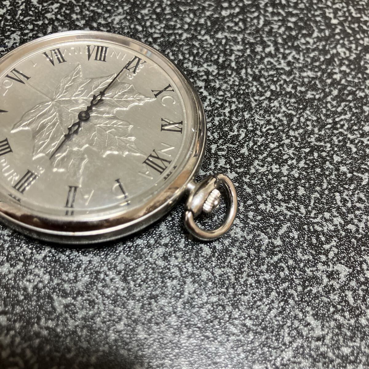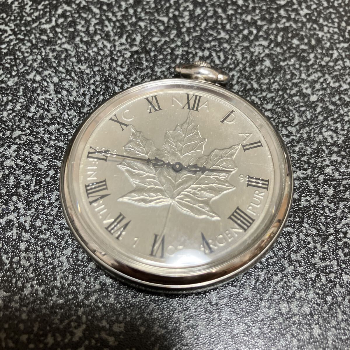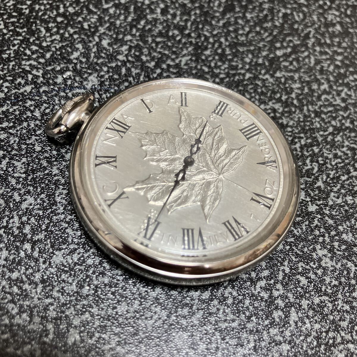 1円〜 懐中時計 999.9 SILVER 1オンス エリザベス 2世 銀時計 メイプルリーフ銀貨 純銀 ジャンク