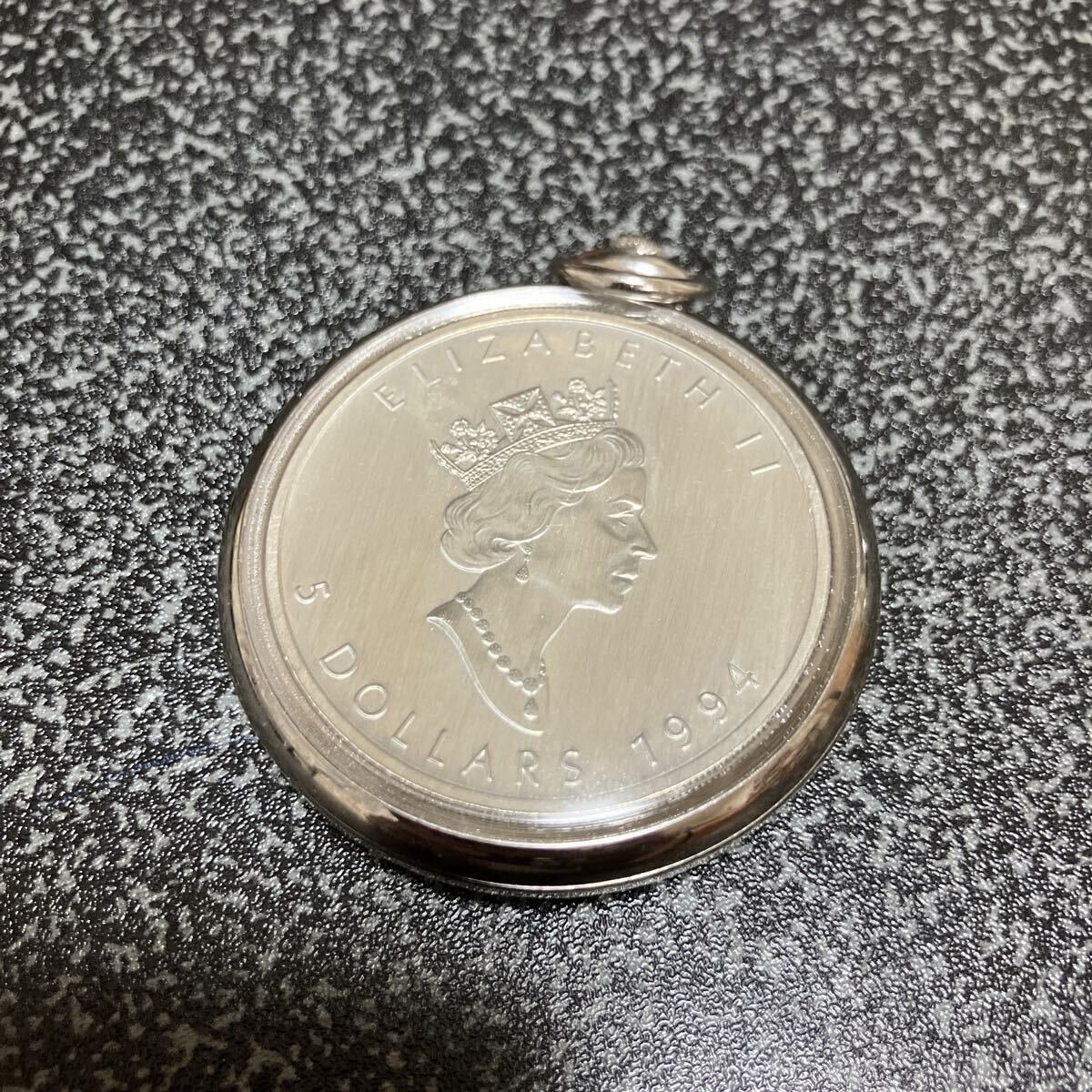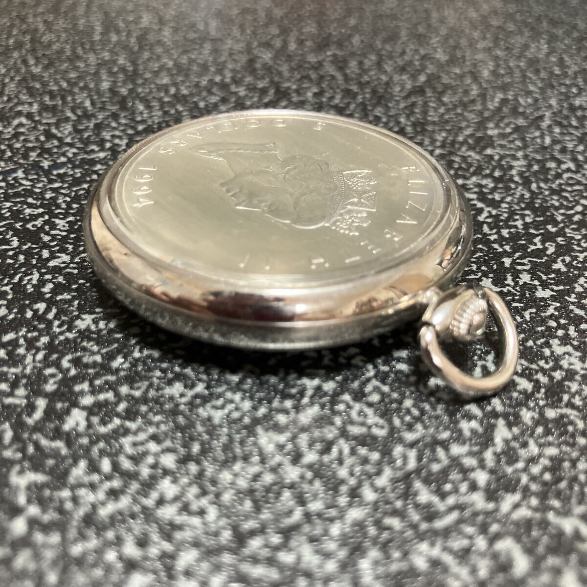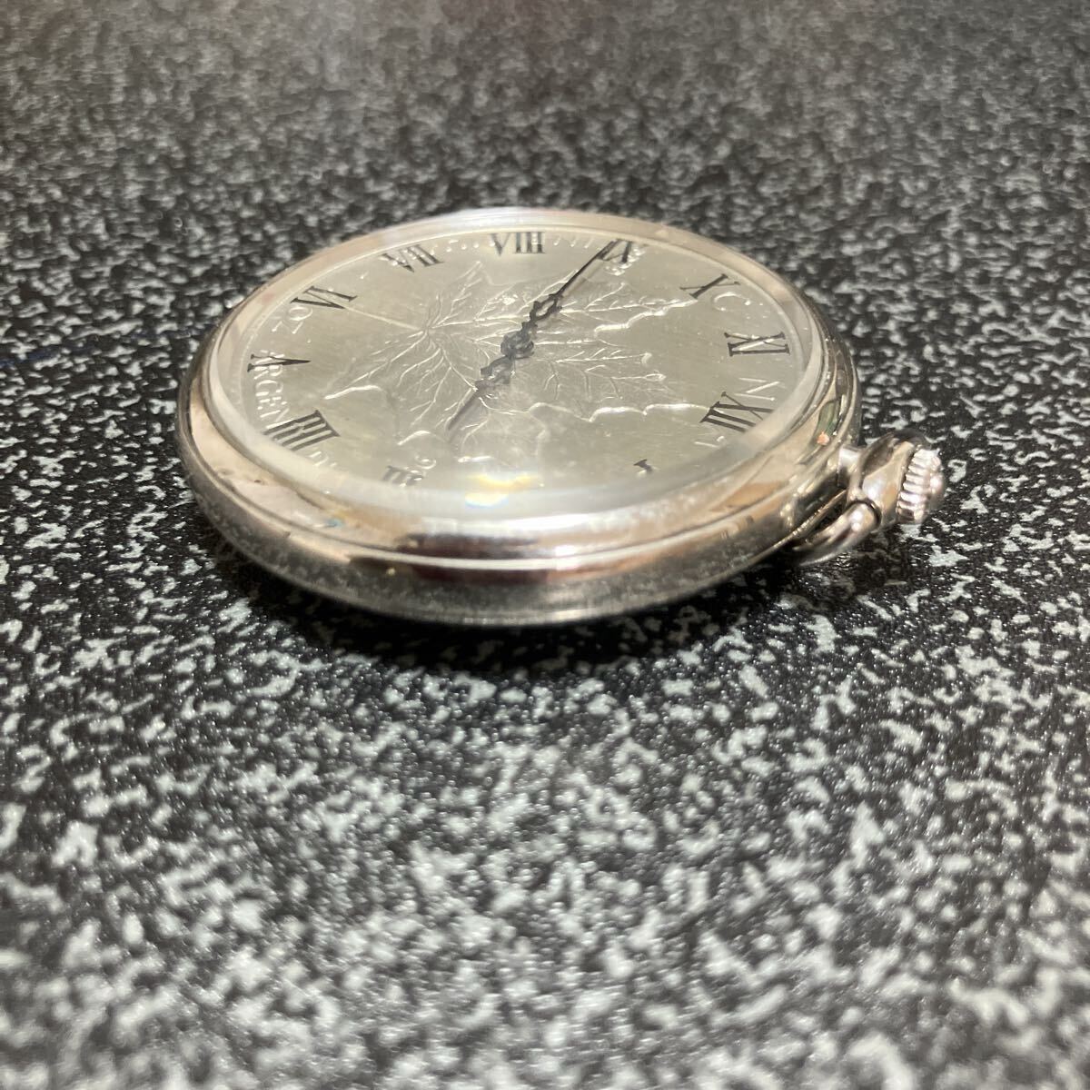 1円〜 懐中時計 999.9 SILVER 1オンス エリザベス 2世 銀時計 メイプルリーフ銀貨 純銀 ジャンク