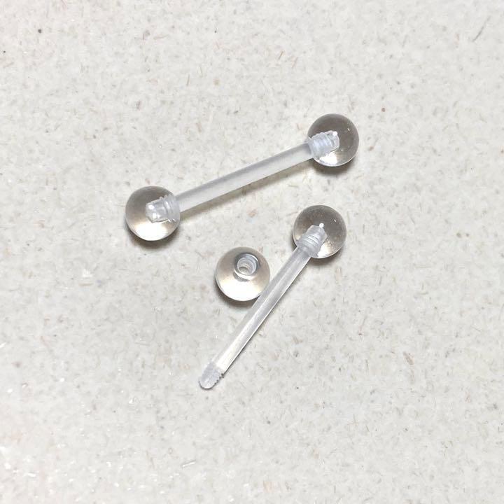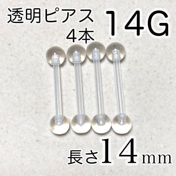 14G 長さ14mm 4本 バーベルピアス 透明ボディピアス 樹脂