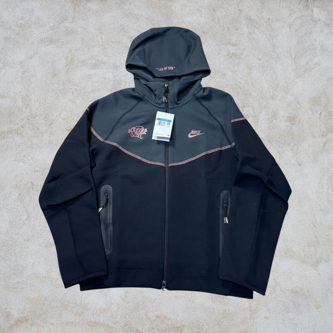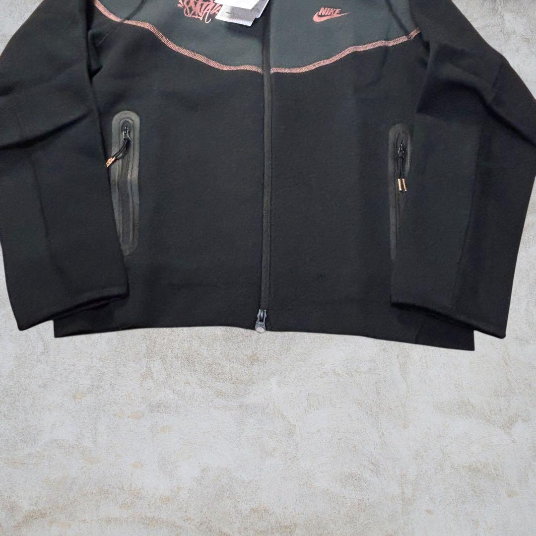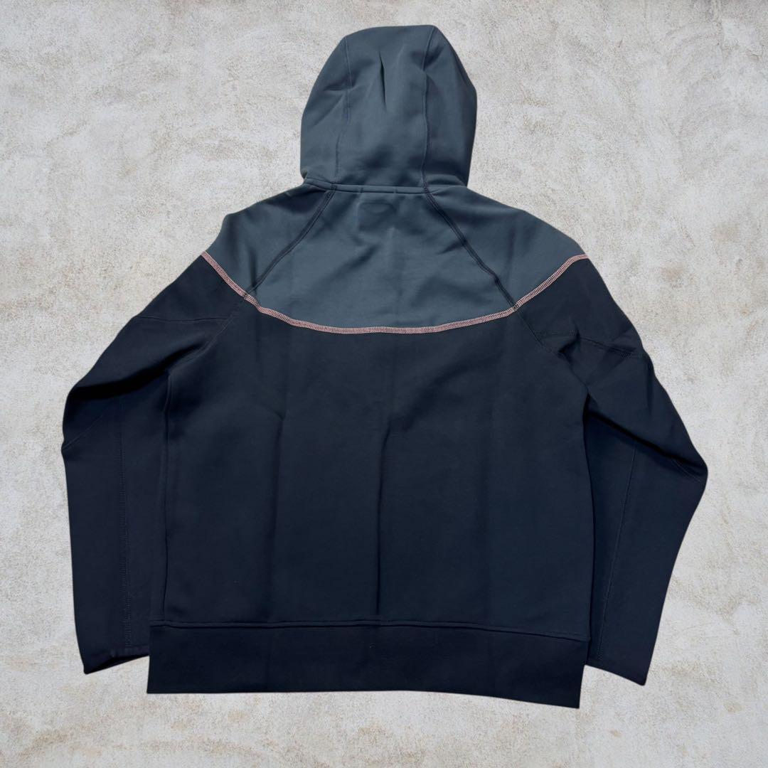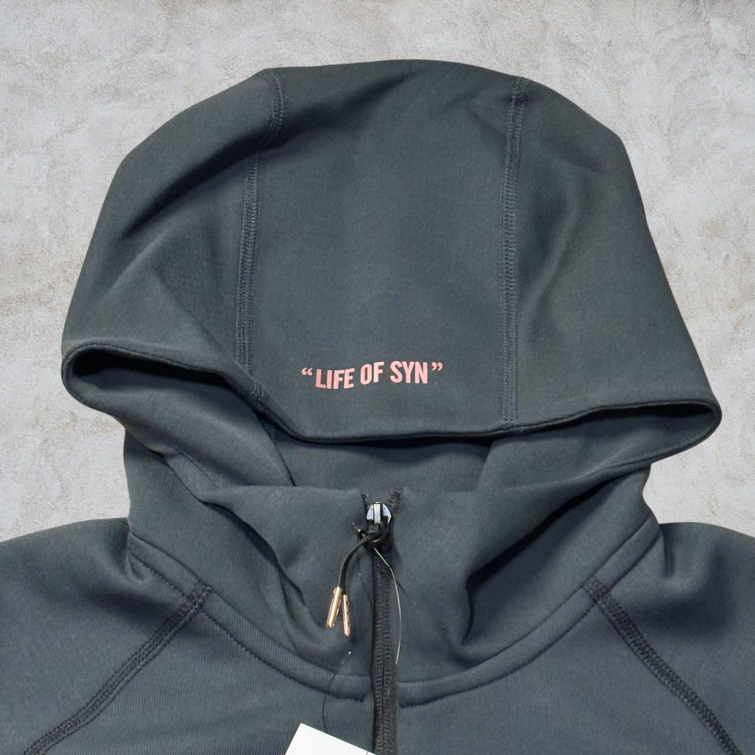 保温性・ストレッチ性に優れたテックフリース素材。フード付きのパーカー型のケープデザイン。
