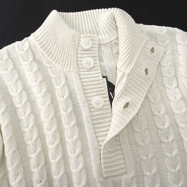 新品 未使用 紙タグあり Mサイズ チェスト88~96 身長165~175 ※写真は別サイズを使用している場合がございます※ ※商品に記載されたサイズ・寸法です※ 肩幅46cm 身幅55cm 袖丈60cm 着丈66cm ※伸縮性が高い素材のため多少誤差が生じる事があります※ アクリル70% 毛30% ホワイト |