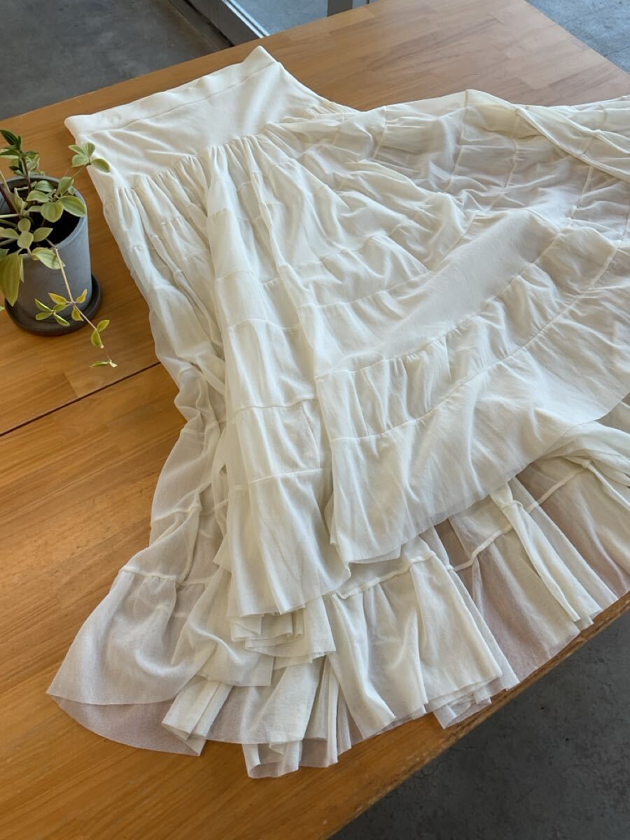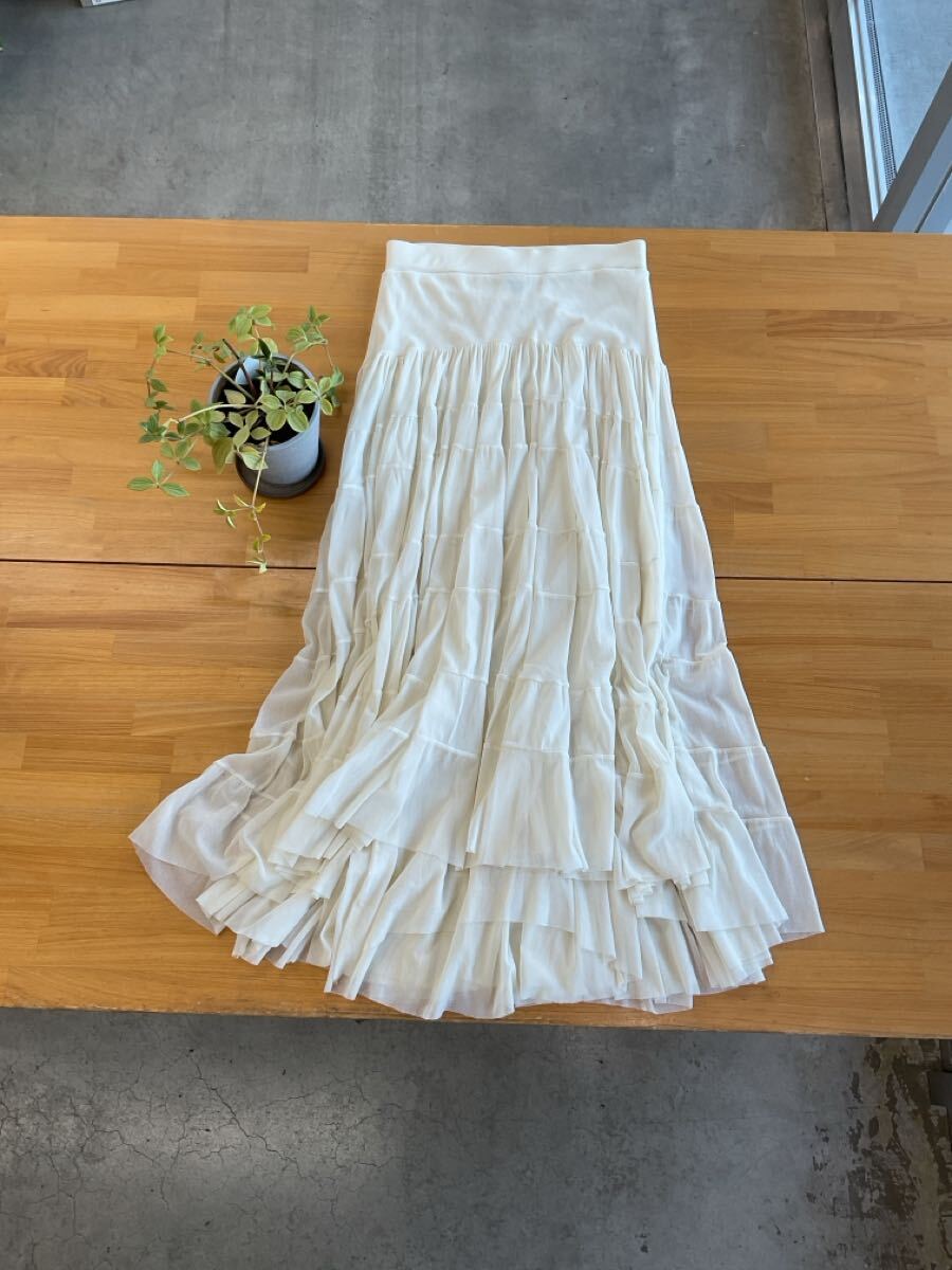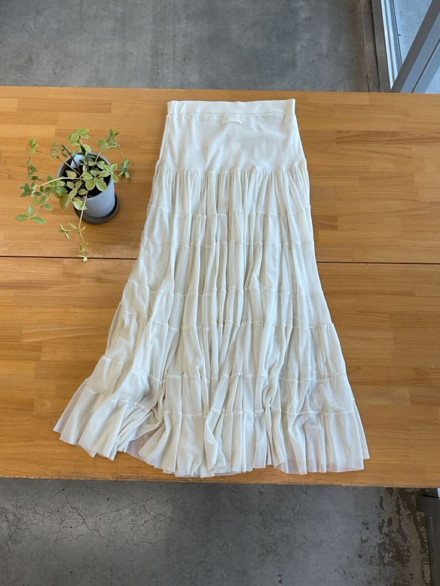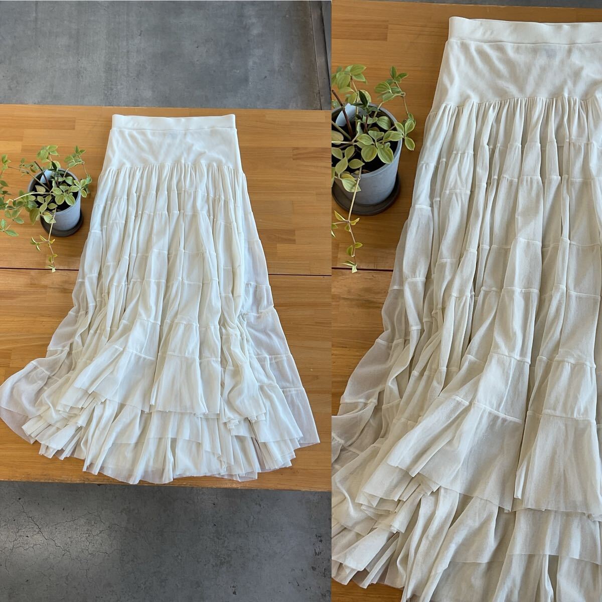 美品 JEAN PAUL GAULTIER ジャンポールゴルチエ soleil レイヤードチュールシアーロングスカート フレアボトムス ホワイト白色系 Sサイズ q