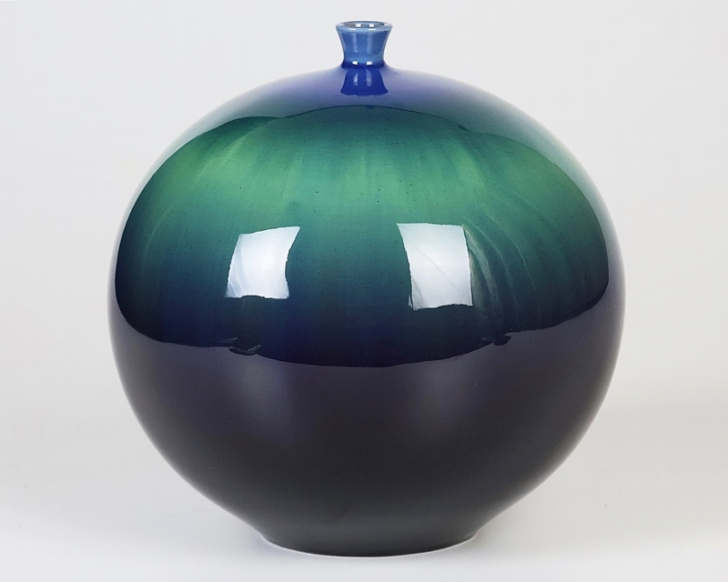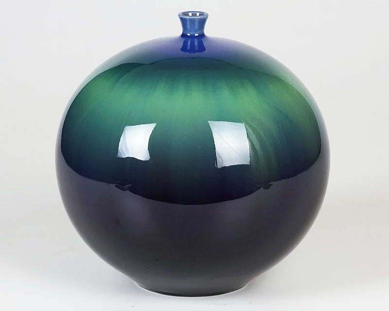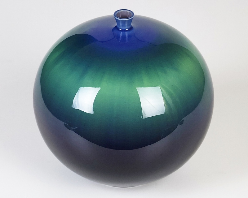 代表的な釉薬のグラデーションがまるでオーロラのように美しい作品。