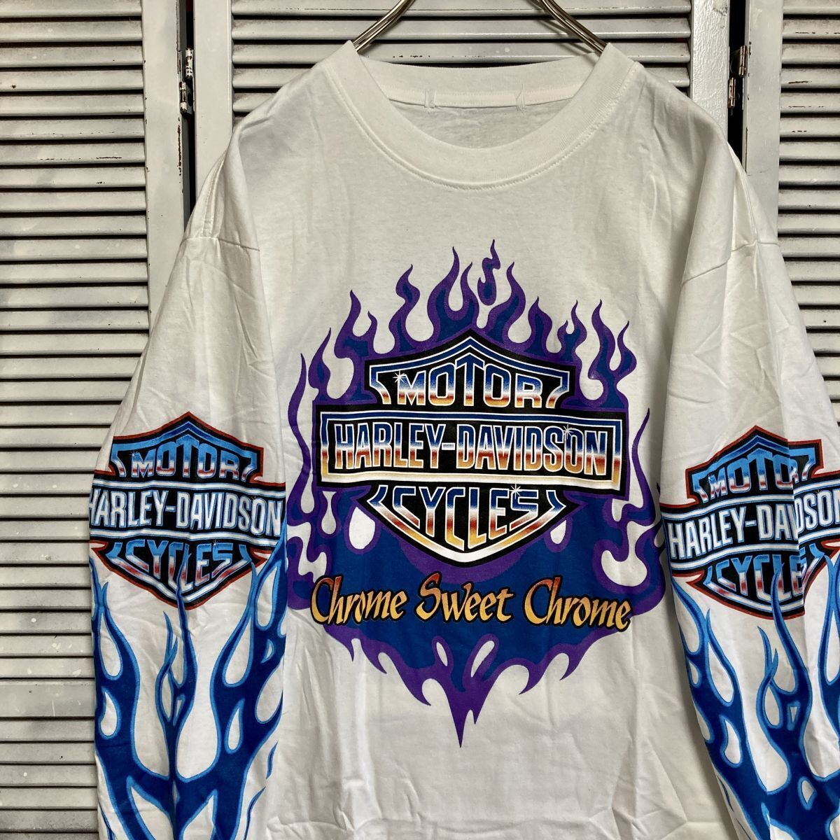 1円スタート 白 バイク Tシャツ 長袖 ロンT ハーレーダビットソン ロゴ HARLEY DAVIDSON フレイム ファイア 古着 卸 仕入れ(0)