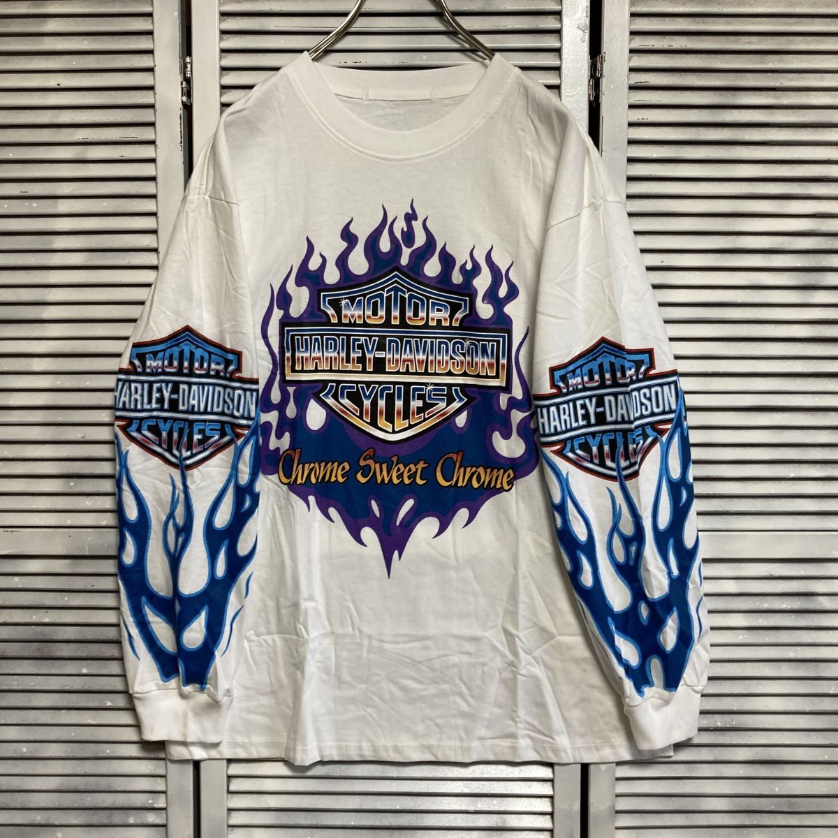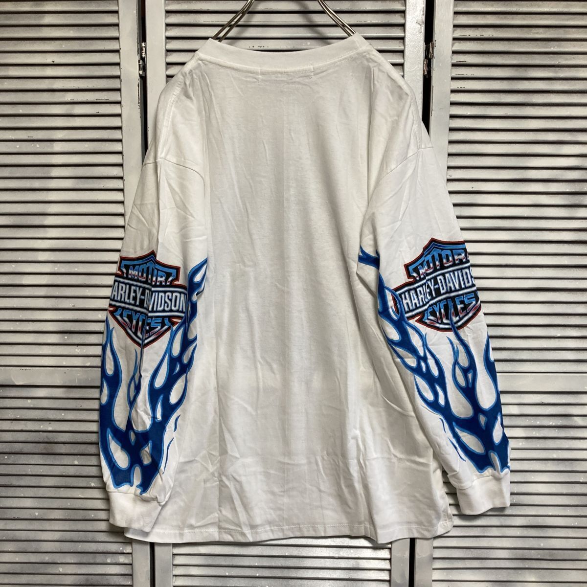 BGSG 1円スタート 白 バイク Tシャツ 長袖 ロンT ハーレーダビットソン HARLEYDAVIDSON ロゴ フレイム ファイア 90s 00s ビンテージ アメリカ 古着 ベール 卸 仕入れ kg