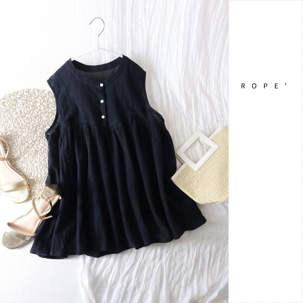 ロペ ROPE'☆洗える 綿100% はしごレース ノースリーブ ギャザーブラウス 38サイズ☆A-O 4597