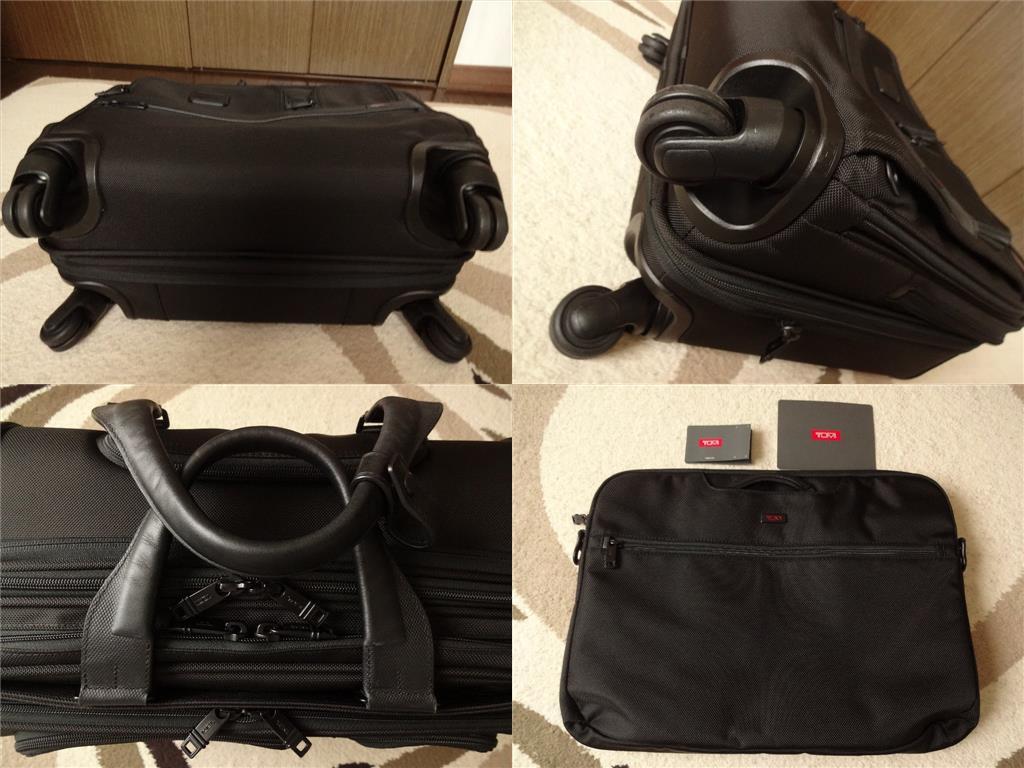 TUMI(トゥミ) ALPHA2 4輪キャリーケース 【製品名】4Wheeled Deluxe Brief with Laptop Case 【型番】26627D2 【キャリーケースサイズ】約H39.5cm×W44.5cm×D25.5-30.5cm 【ブリーフケースサイズ】約30.5cm×40.5cm×3.75cm 【重量】約5.6kg 【容量】約28L 【カラー】ブラック 【素材】FXTバリスティックナイロン&レザー※防弾チョッキに使われる強靱な素材です。 【装備】レザーハンドル、静音ダブルホイール、アド・ア・バッグ・スリーブ他 【付属品】ブリーフケース、レザー製アドレスタグ 【特徴】拡張機能を装備した4輪キャリーケースです。 機内持込可能(100席以上)サイズとなります。 旧モデルから軽量化されたALPHA2シリーズです。 改良されたダブルホイールで走行性・静音性が大幅にアップしています。 ファスナーによりマチ幅を約5cm拡張可能です。 【状態】ホイール周りを中心に若干の擦れキズございますが 使用歴は少ないので全体的に綺麗な状態です。 キャリーハンドル、ホイール、各ファスナーの可動良好です。 画像に写っているものが全てです。その他の付属品等はありません。 【追記】画像で縞模様に見えるのはデジタルカメラによる「モアレ現象」で実際にはありません。 |