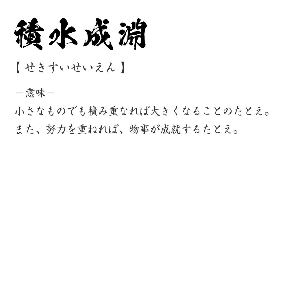 積水成淵 ( せきすいせいえん ) 書道家が書く デザイン Tシャツ 【 四文字熟語 】 メンズ レディース キッズ