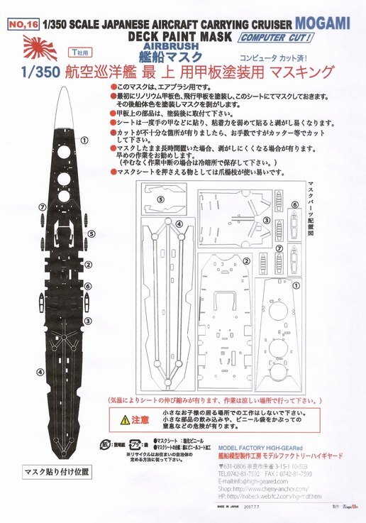 【送料込み】1/350航空巡洋艦「最上」(T社)用 甲板塗装マスキングシート モデルファクトリーハイギヤード