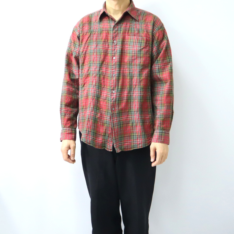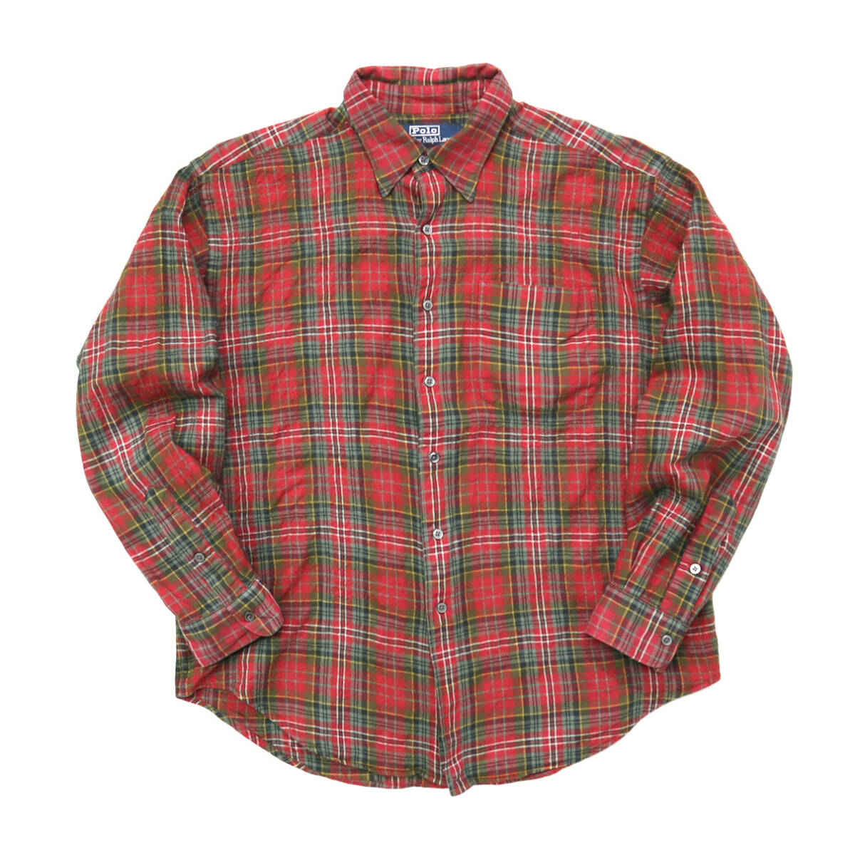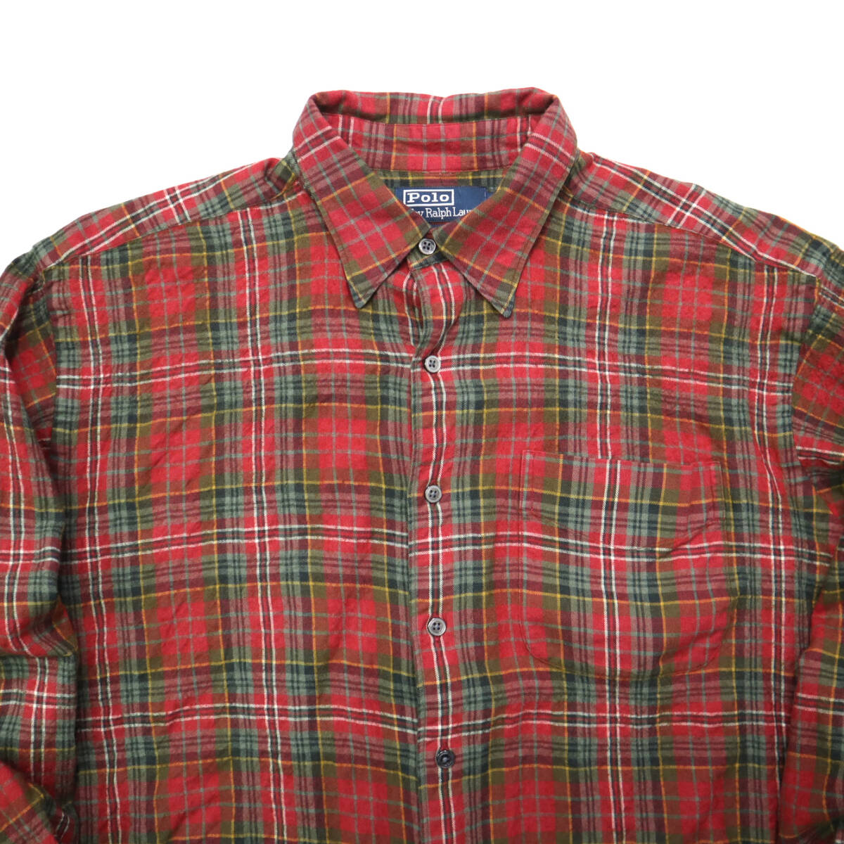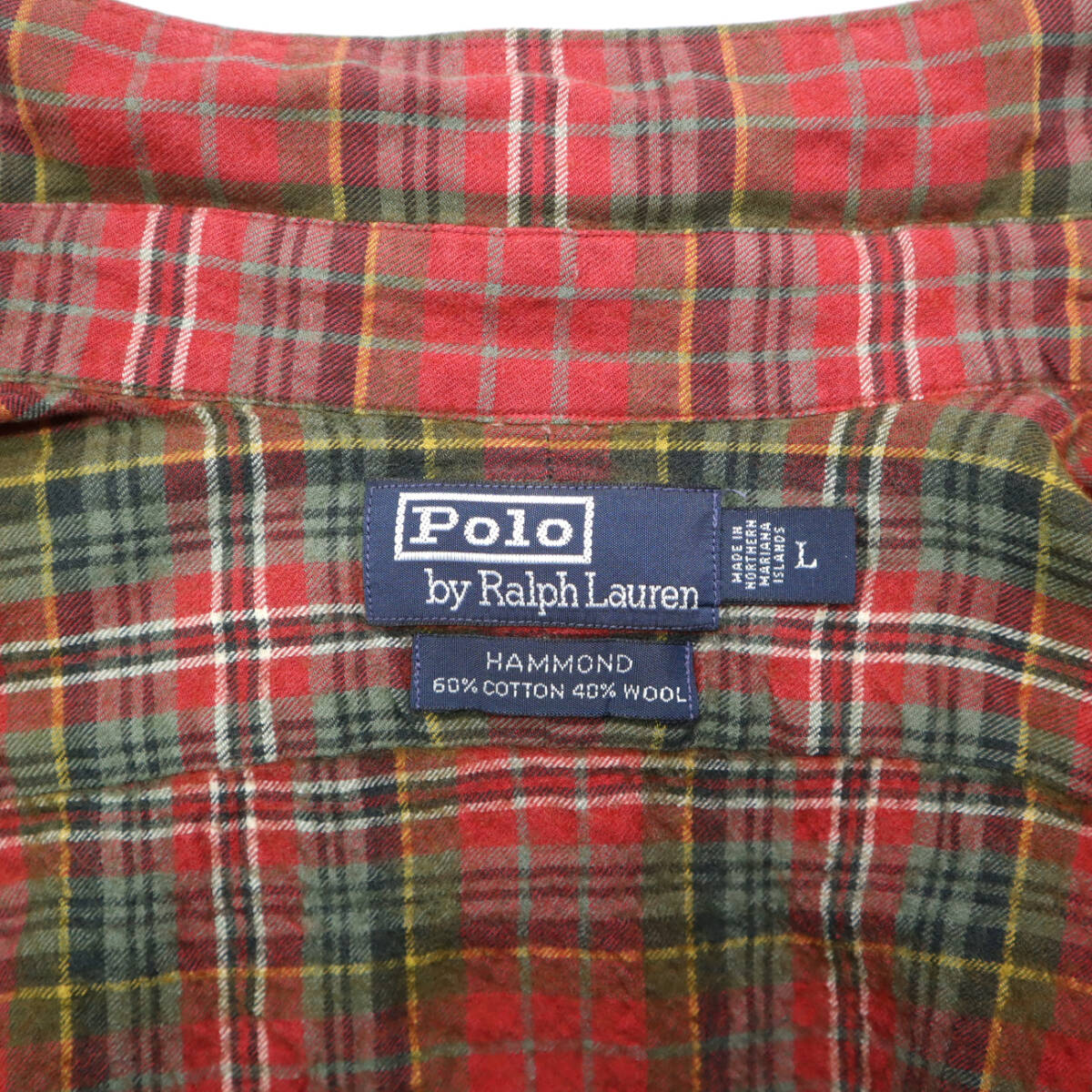 90s ビンテージ POLO RALPH LAUREN ポロ ラルフロレーン HAMMOND ウール コットン チェック シャツ 長袖 1990年代 古着 赤 メンズ M L
