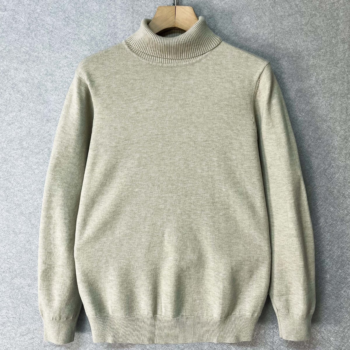 個性・セーター 定価4万◆Emmauela・イタリア・ミラノ発◆ウール混 柔らか 暖かい 無地 ハイネック ニット 長袖 トップス インナー 紳士 秋冬 M/46サイズ
