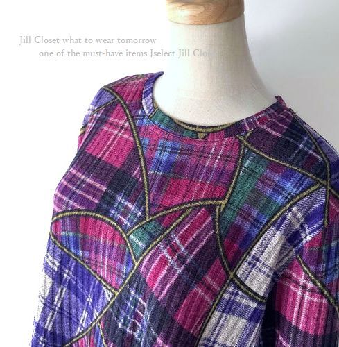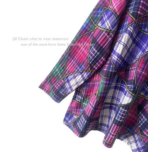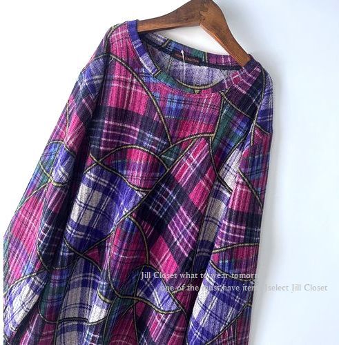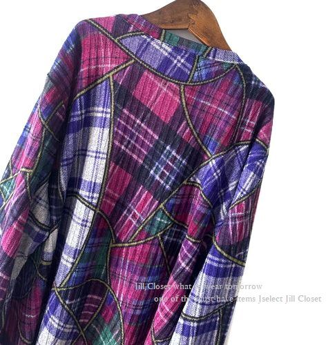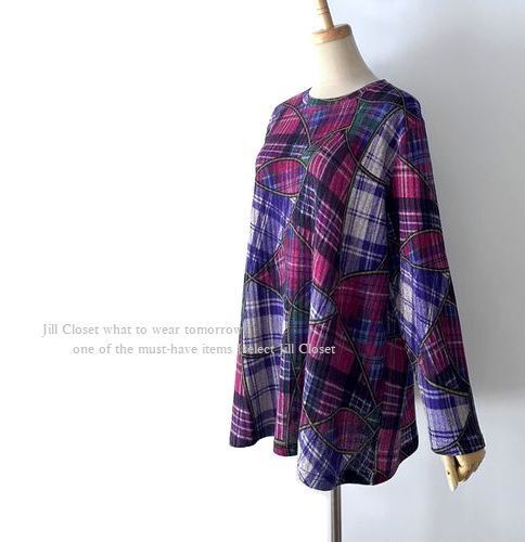 新品【送料185円】伸縮◎パッチワーク風&チェック柄*ランダム配色プリント*スタイルカバー◎ニットソー プルオーバーチュニック7702.PK