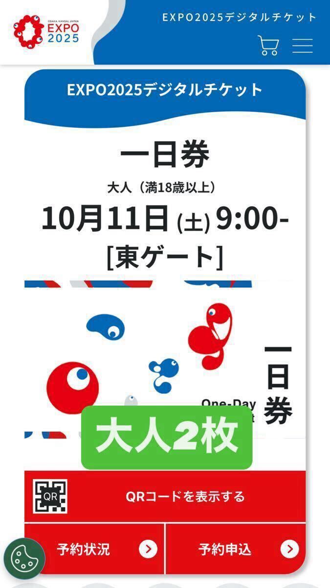 こちらのチケットを受け取りしていただければ10/11東ゲート9:00の入場予約が確約されます。
