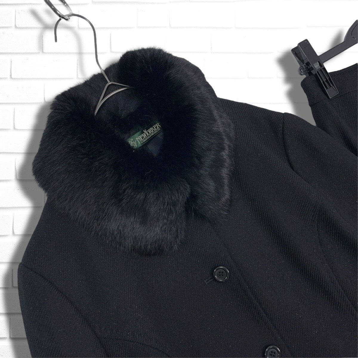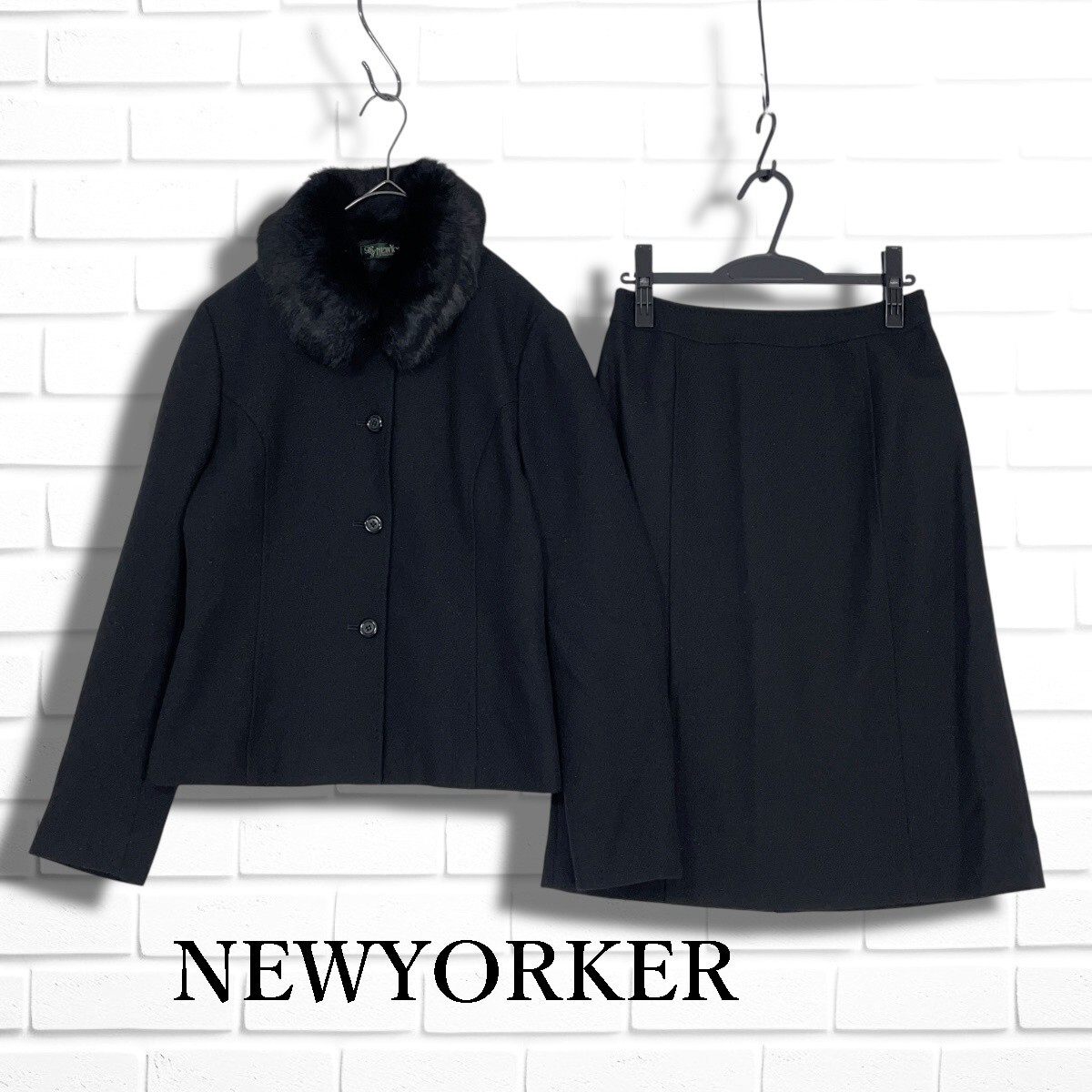 ◆美品◆ NEWYORKER ニューヨーカー フォーマル セットアップ ラビット ファー ウール ジャケット スカート スーツ 黒 ブラック レディース 11 L ◆送料無料◆ 5635I◇