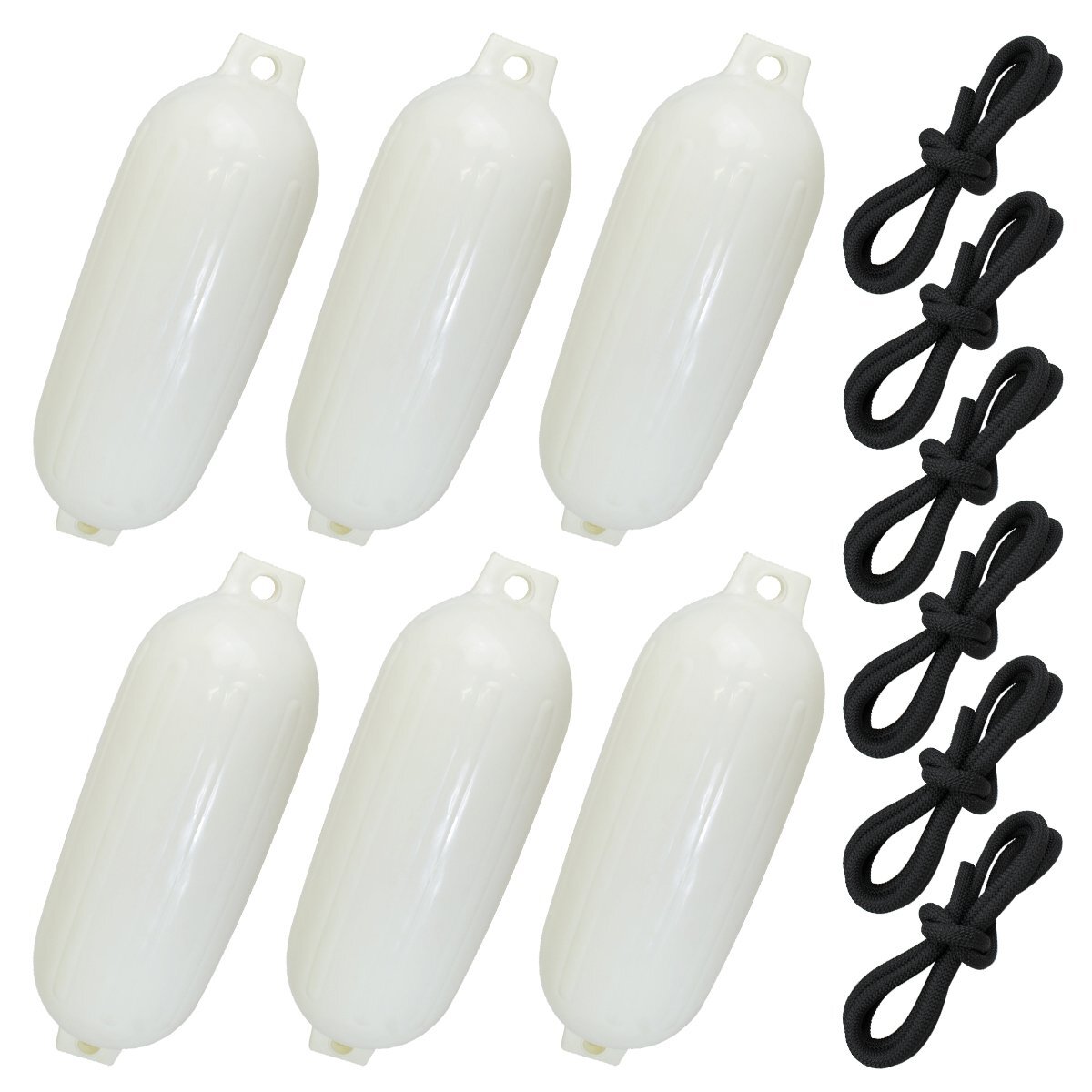 『6セット』 ボートフェンダー 680×240mm フェンダー ロープ 2m 黒/ブラック 浮き ブイ フロートロープ 係留ロープ