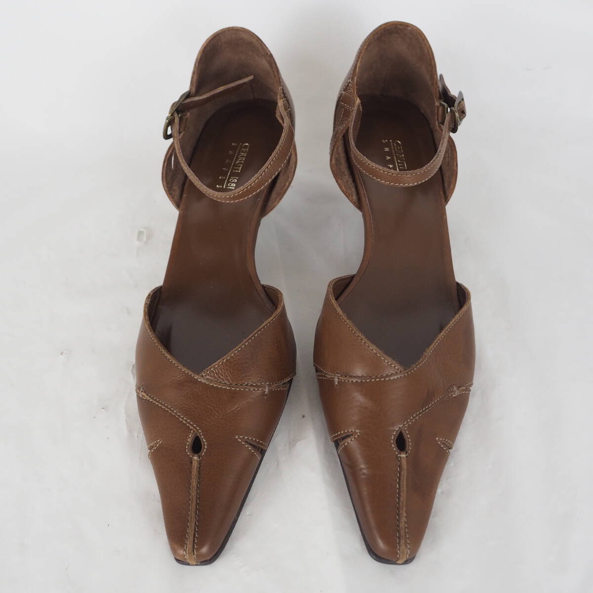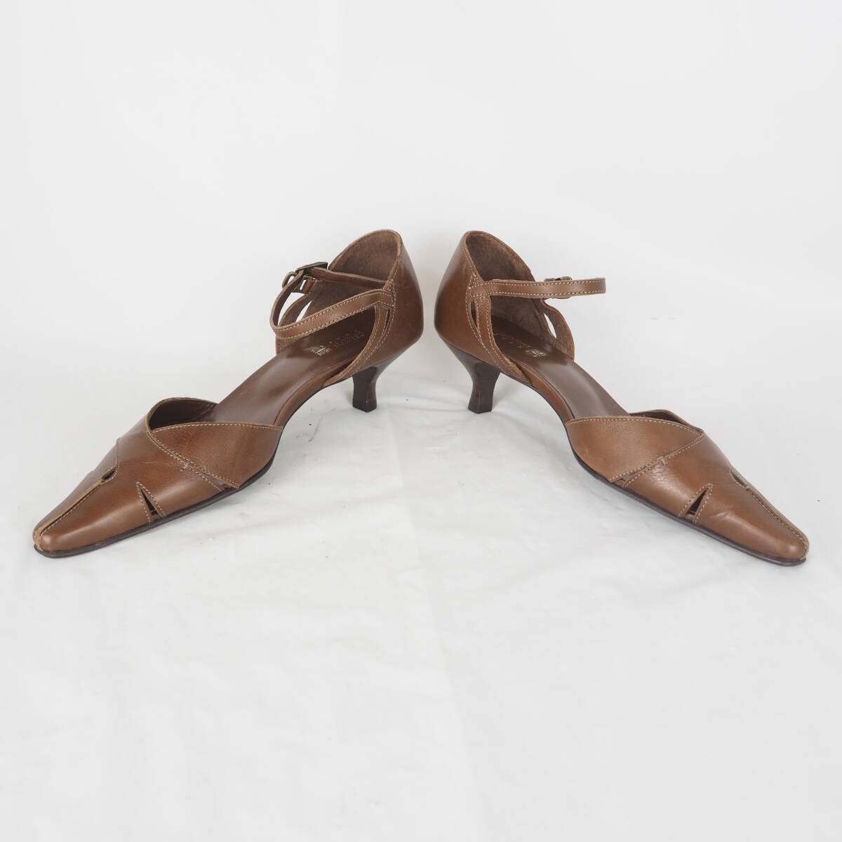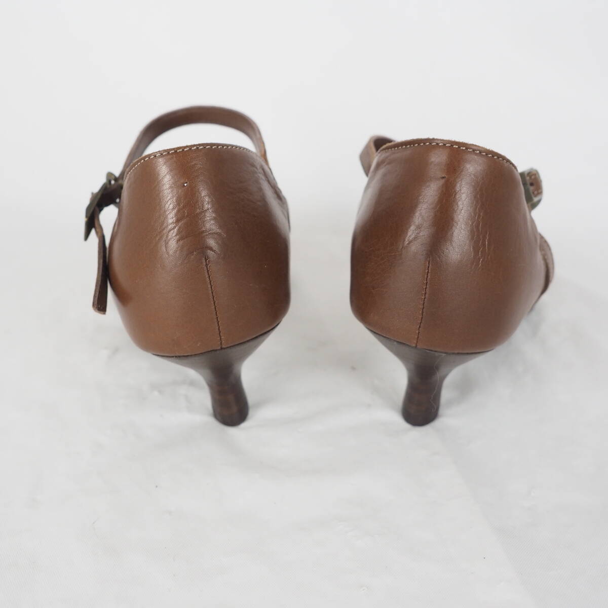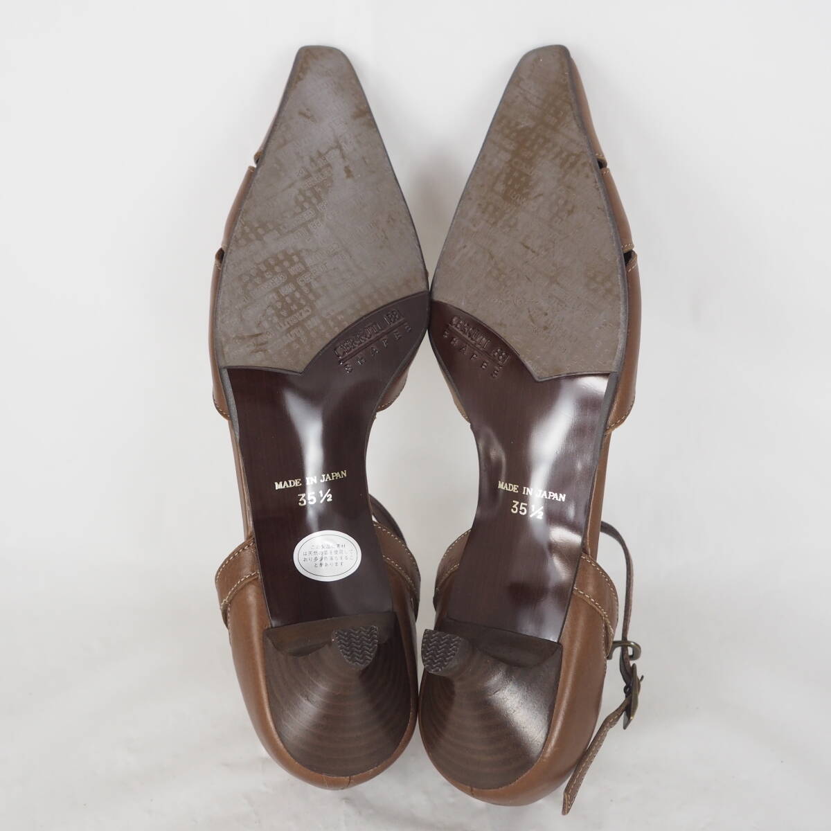ページをご覧いただきありがとうございます^^靴、ブーツを中心に出品しております。 深みのあるブラウンカラーとシャープなポインテッドトゥが大人っぽい印象を与える一足です。 華奢なアンクルストラップと程よい高さのヒールで、女性らしさと歩きやすさを兼ね備えています。 ☆商品詳細☆