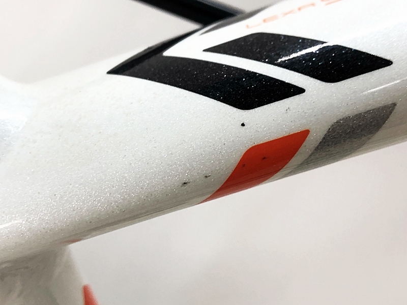 フレーム、その他外観:左チェーンステー、クランク、STIレバーにキズ、ヘッドチューブに各ワイヤーとのスレキズ、トップチューブ、リアディレイラー、バーテープに小キズがあります。その他フレームやパーツに小傷や擦れ傷、薄い汚れはありますが、全体的に使用感の少ない美品車体です。
