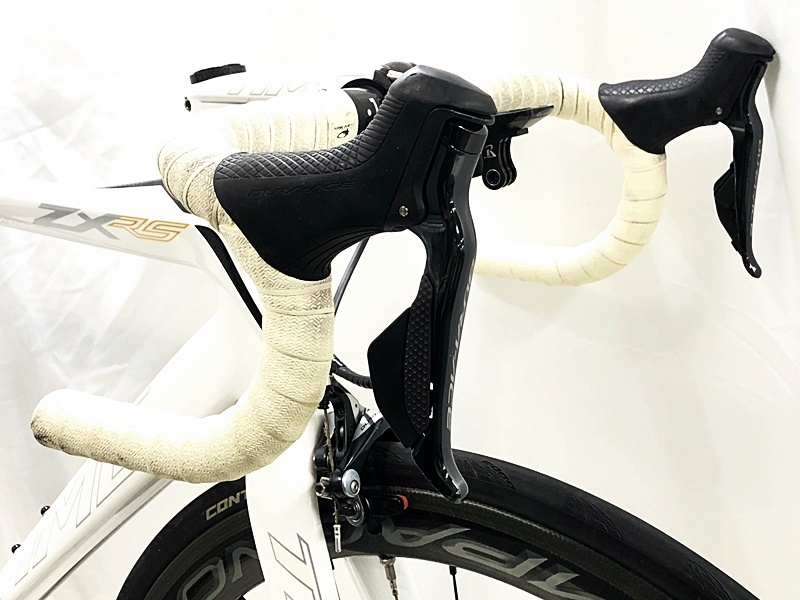 ■商品情報【自転車種】:ロードバイク【年式】:2013年【メーカー】:TIME(タイム)【モデル名】:ZXRS(ZXRS)【フレーム素材】:カーボン【メーカーサイズ】:Sサイズ【適正身長】:175~185cm(あくまで目安です)【ヘッドチューブ】:150mm(実寸)【シートチューブ】:485mm(C-C実寸)610mm(C-T実寸)【トップチューブ】:547mm(C-C実寸)【重量】:6.95kg【クランク】:ULTEGRA R8000/170mm【変速レバー】:DURA-ACE 電動Di2 R9150/2×11速【フロントディレイラー】:DURA-ACE 電動Di2 R9150【リアディレイラー】:DURA-ACE 電動Di2 R9150【スプロケット】:DURA-ACE R9100【ブレーキキャリパー】:DURA-ACE 9000【ホイール】:CAMPAGNOLO BORA ULTRA 50/700×25C【ステム】:TIME/120mm【ハンドル】:Fizik CYRANO/410mm【シートポスト】:TIME【サドル】:FIZIK ANTARES【状態レベル】:中古:E(ジャンク/要メンテナンス、オーバーホール推奨。現状お渡し品)【参考価格】:-【必ずご確認ください】※商品ページ最下部にも商品についての詳細案内がございます。