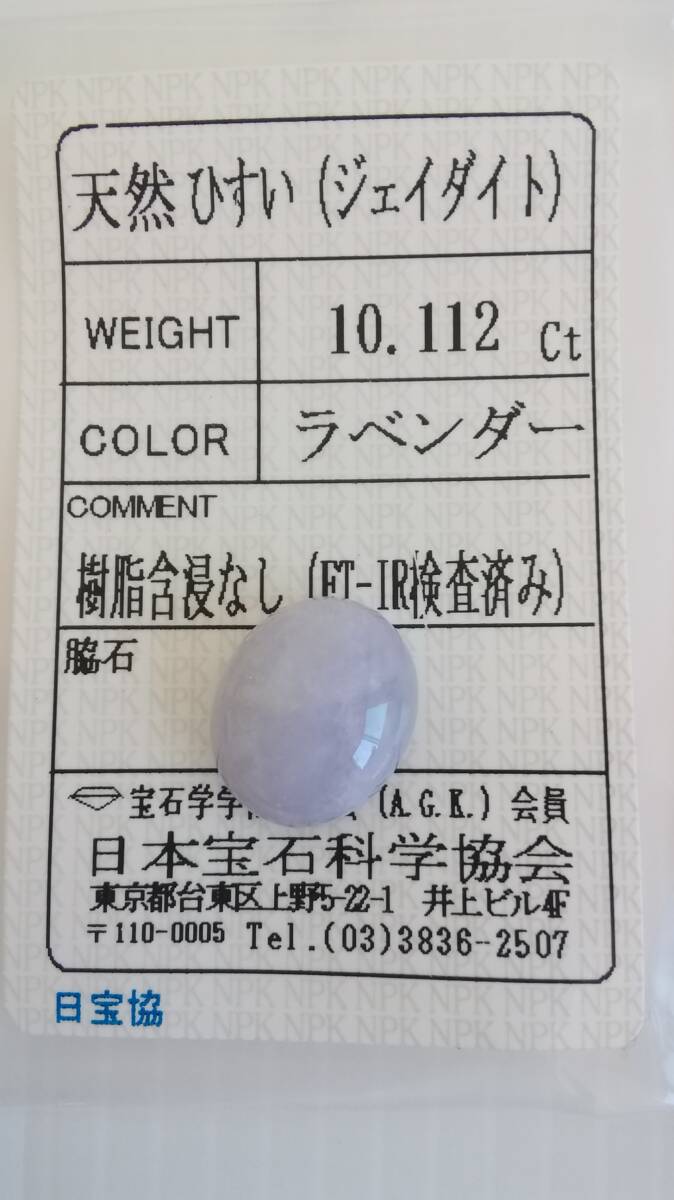 天然 ラベンダー翡翠 ルース ひすい(ジェイダイト) 15x12.9x6mm、10.112ct ソーティング付き