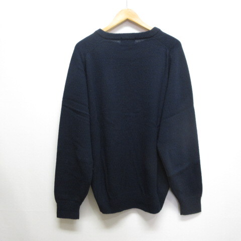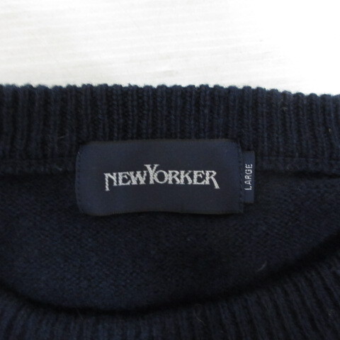 ニューヨーカー NEWYORKER クルーネック ニット セーター L ネイビー ウール100% メンズ
