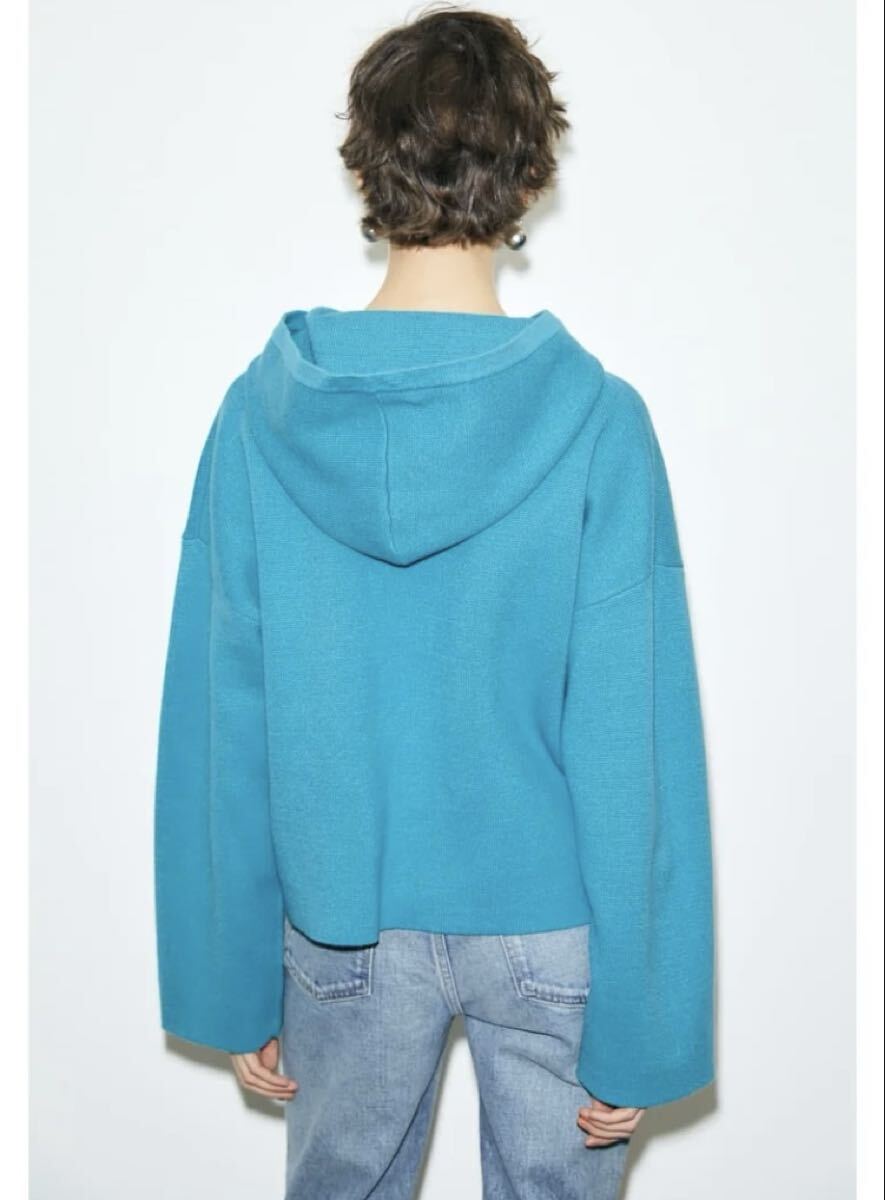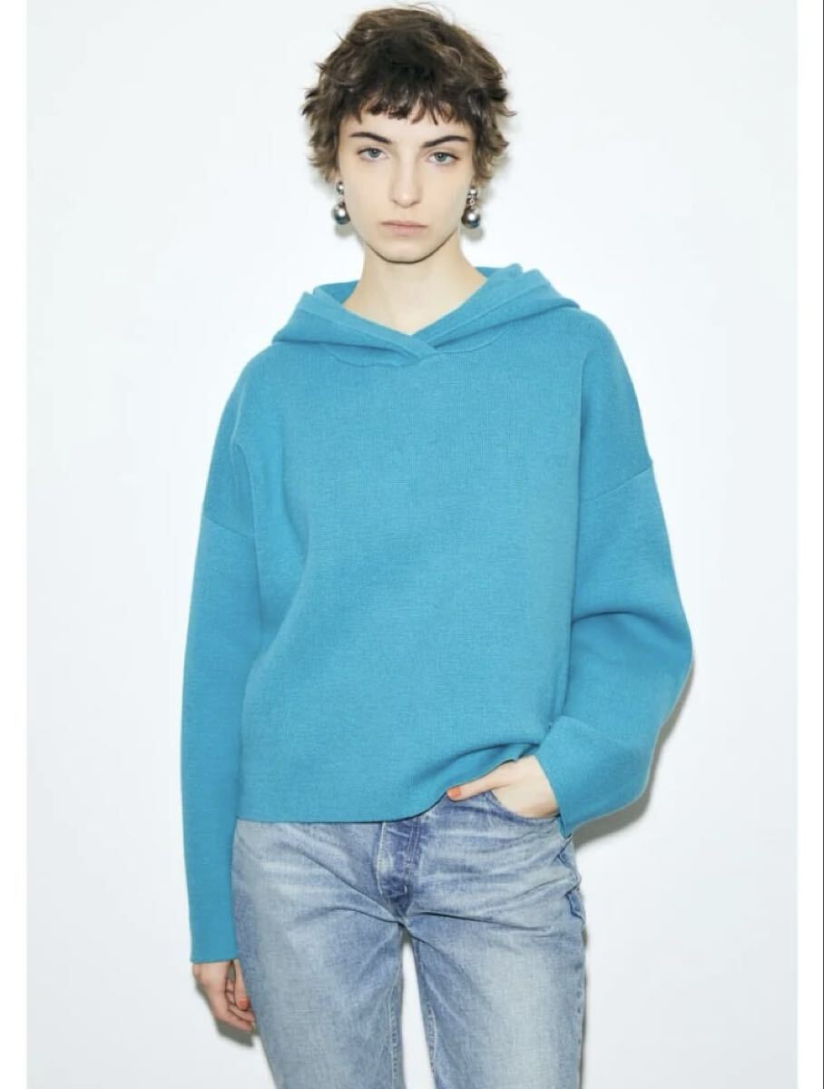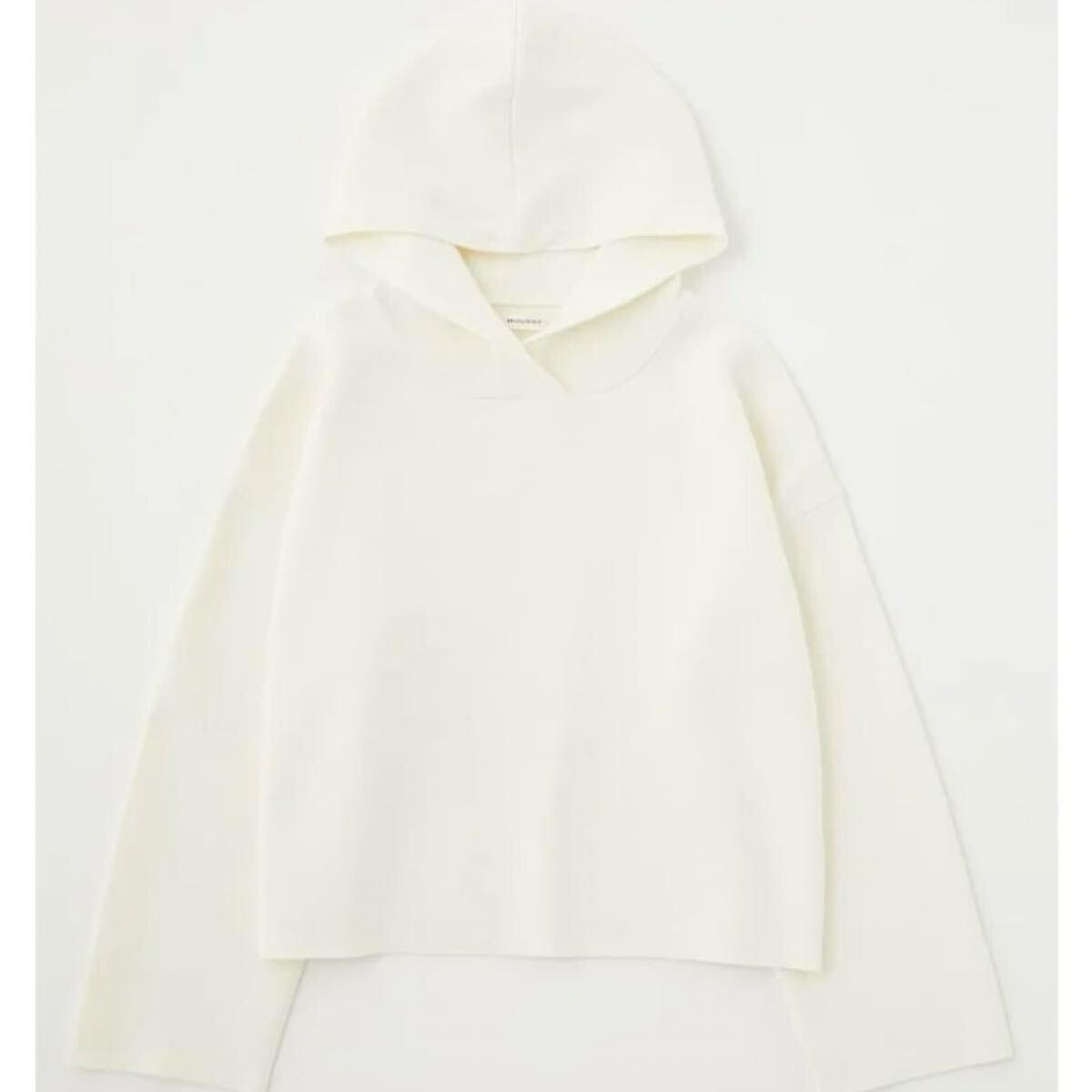 程よい厚みと張り感のあるミラノリブの編み立てが上品な印象のニットフーディー。