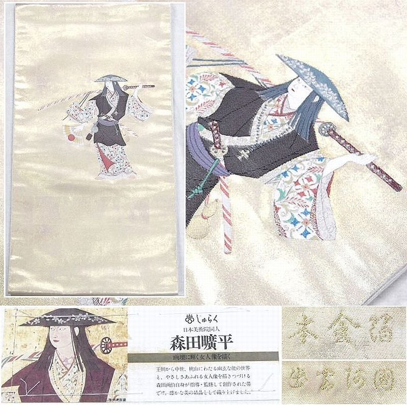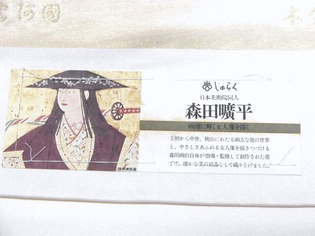 森田画伯自身が指導・監修して創作された正絹の西陣の袋帯で未仕立て品です。
