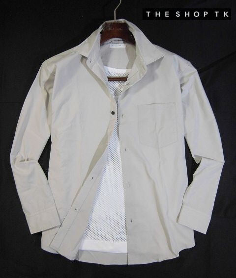 J火10159新品▼ タケオキクチ 【 L 】 ライトベージュ系 THE SHOP TK 長袖シャツ ブロードシャツ 吸水速乾性 シャツ イージーケア性