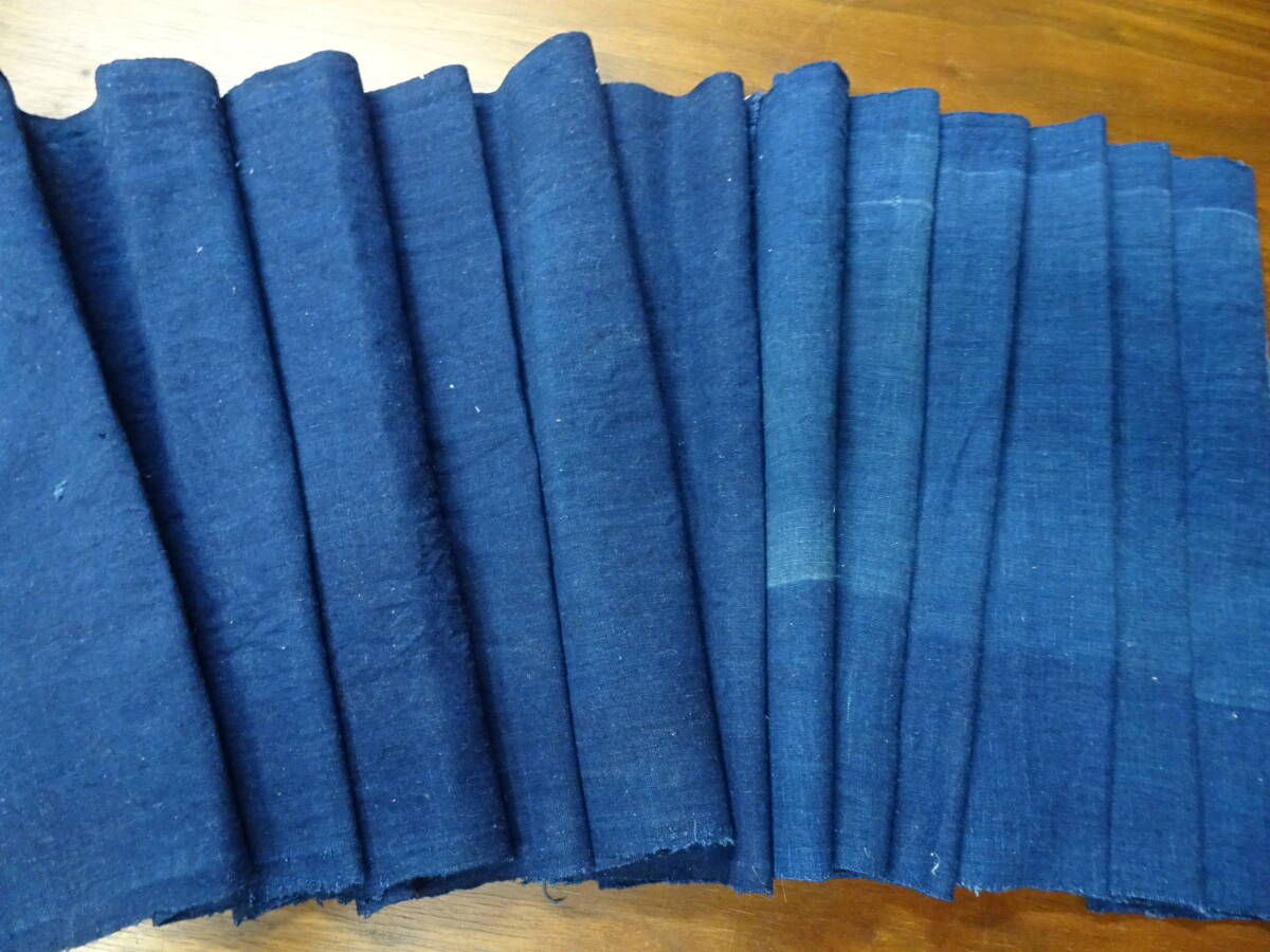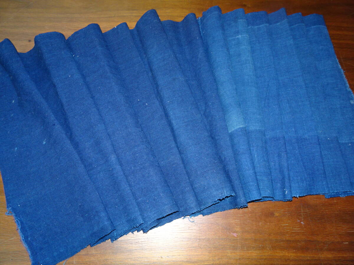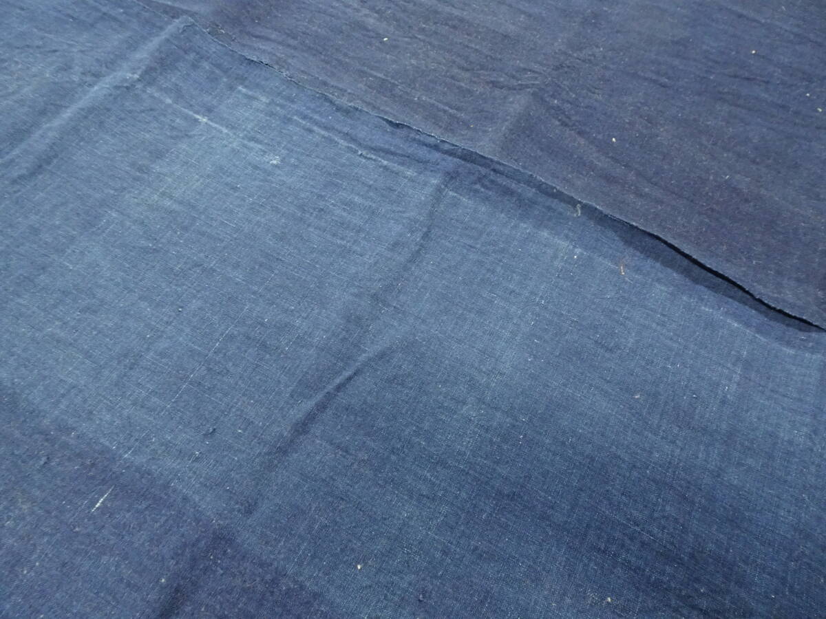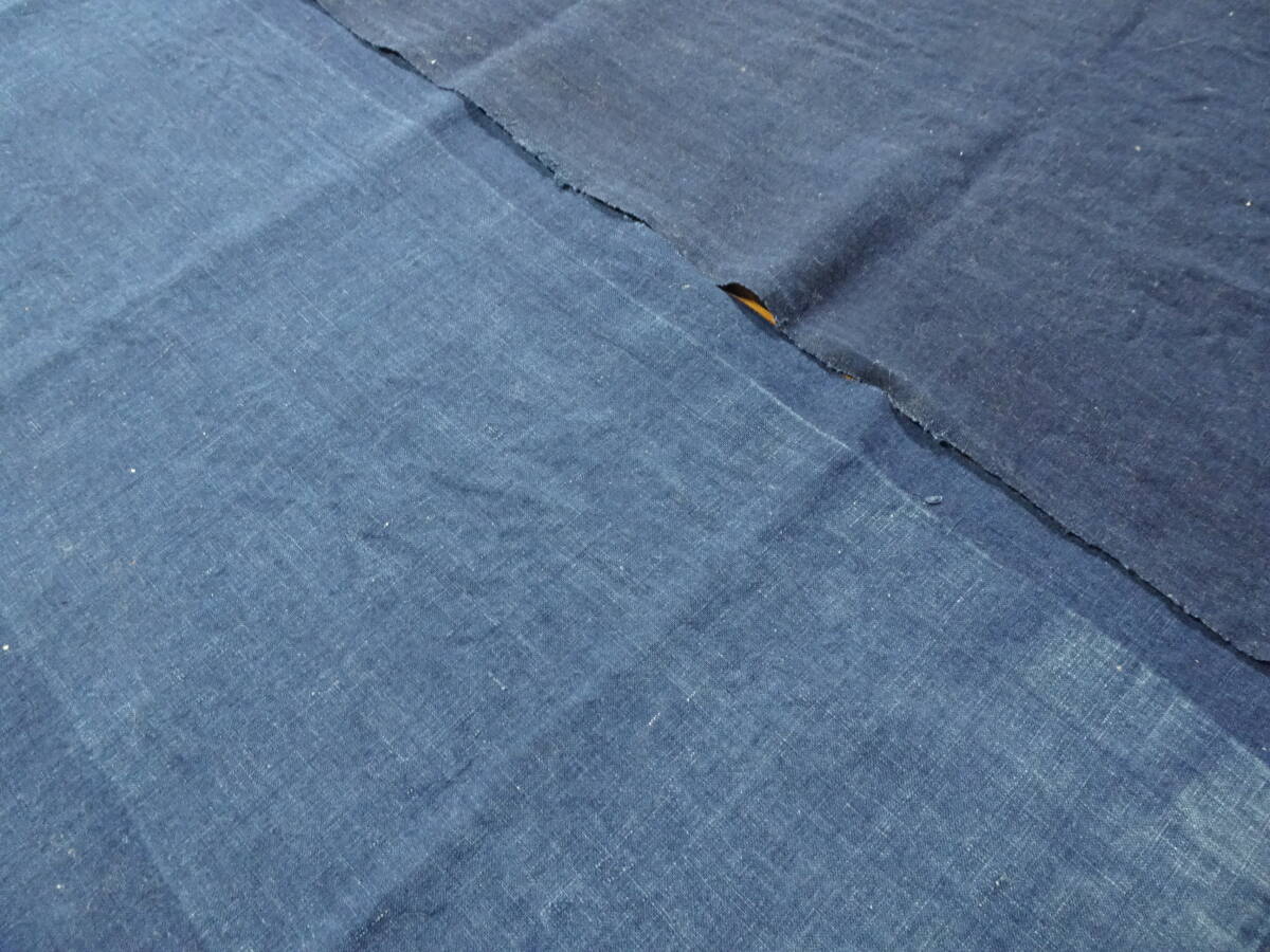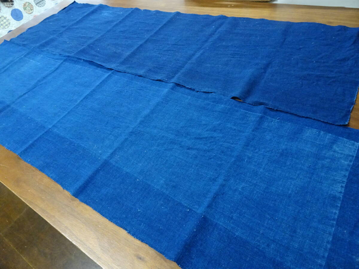 1001-7 古布木綿 藍染濃淡無地布-2枚 洗濯済 リメイク素材