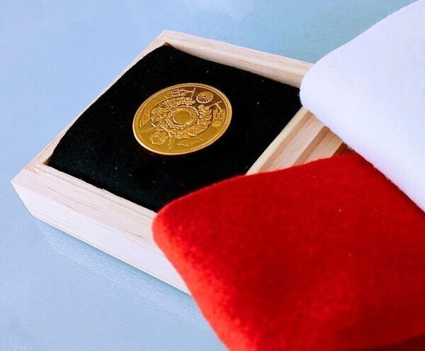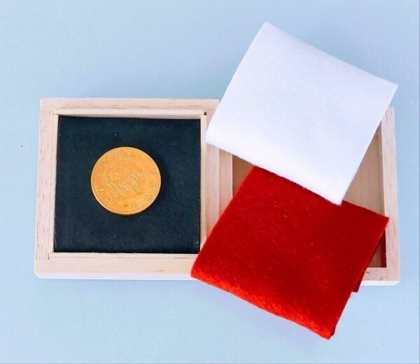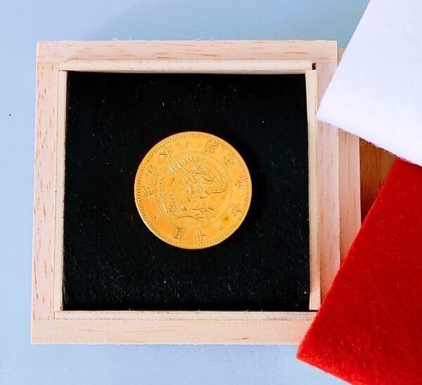 旧10円 金貨 明治9年 木箱入り アンティークコレクション 古銭 座布団カラー選択可