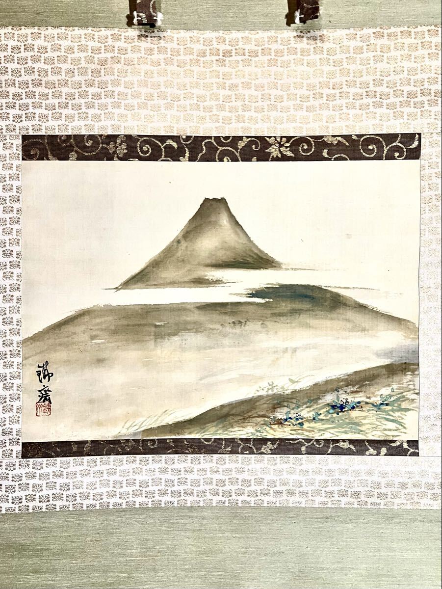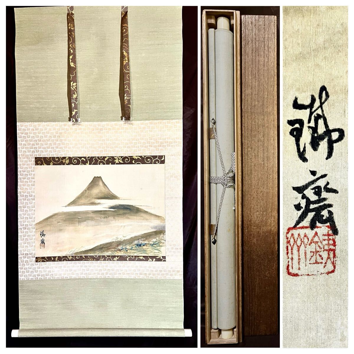 【真作】【仙】富岡鉄斎「富嶽図」絹本 肉筆 合箱 大幅 風景画 山水図 絵画 掛軸 若年期作 幕末-大正時代の日本画家 神社の宮司 京都の人