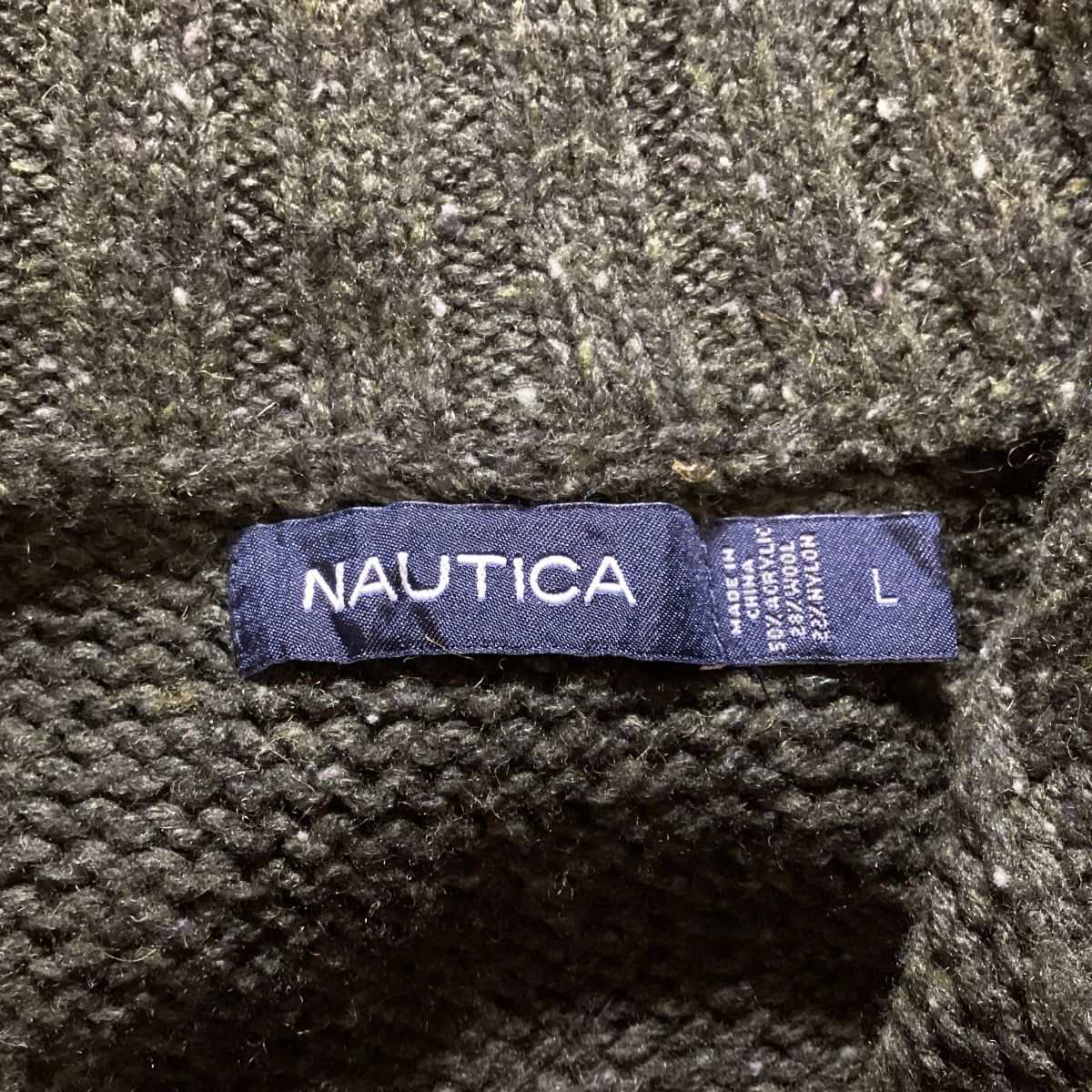 ★USA直輸入!!★正規品★【NAUTICA ノーティカ】4ボタン モックネック ローゲージネップセーター【メンズ L】カーキ モスグリーン K3-396