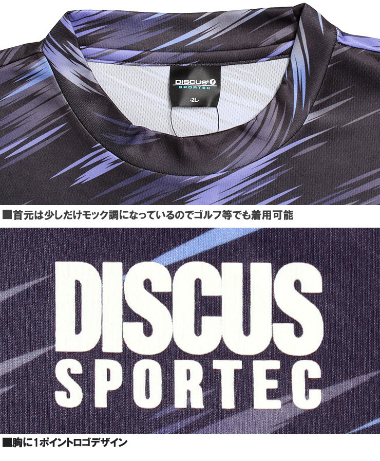 | 商品名 | 【新品】 2L ネイビー DISCUS ディスカス 半袖 Tシャツ メンズ 大きいサイズ 総柄 ロゴ プリント ドライ メッシュ 吸汗速乾 カットソー |