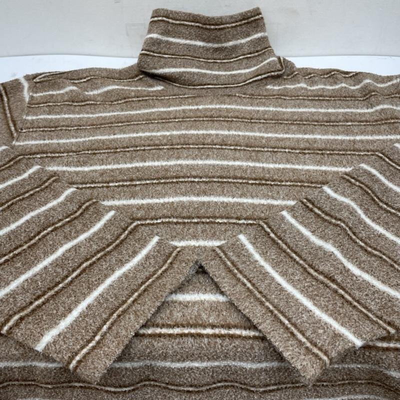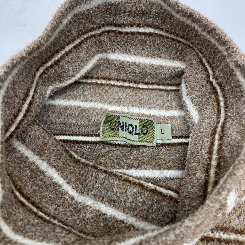 ユニクロ 緑タグ 80s 長袖 フリース ボトルネック ニット プルオーバー セーター ハイネック タートル ボーダー柄 L