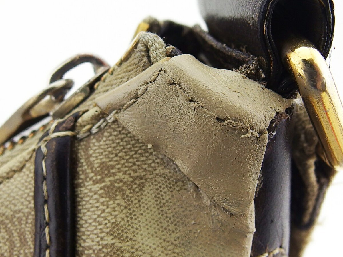 コンディション | 全体の状態詳細:かなりのダメージですがグランジ感をお求めの方におすすめです。社外リペア跡(革着色、ショルダー付け根破れ2ヵ所補強接着)あり。その他 スレ&汚れ(内側&ポケットもあり) 傷 シミ&臭い(内側) 金具ハゲ ヒビ割れ(ショルダー付け根) 擦り切れ(ショルダー縁&内側上部) などの使用感があります。 |