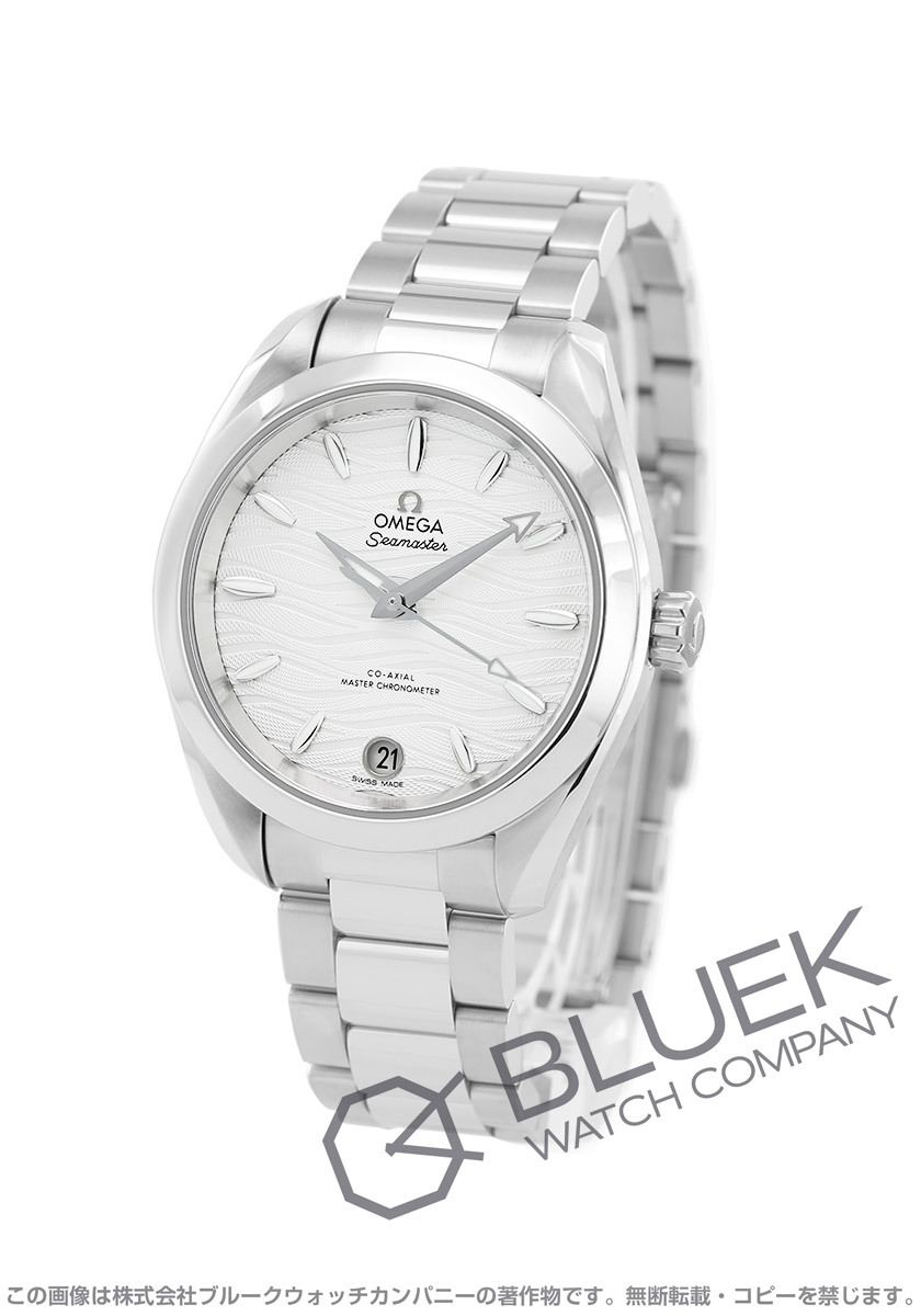 波模様が浮かぶ美しいシルバーダイアルにシルバーブレスレットが爽やかに引き立つアクアテラは、エレガントかつ洗練されたデザインが女性の手元に大人のクラス感を香らせるオメガ人気のタイムピース。18Kホ?ワイトゴ?ールド製のインデックスはヨ?ットの船体を表現し、オメガのオ?ーシ?ャンスピリ?ットを感じさせます。15000ガウスの高耐磁性能マスタークロノメーター(METAS)認定コーアクシャルキャリバー8800を搭載して6時の窓に日付を表示し、ケースバックからは機械の意匠が鑑賞できて見応えがあります。 |
