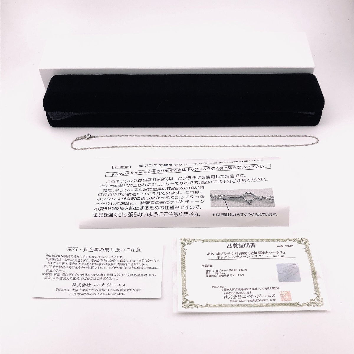 1139〇/あなたと私の宝石箱 純プラチナ(Pt999) ネックレスチェーン スクリュー 42cm (造幣局検定マーク入り) レディース【0725】