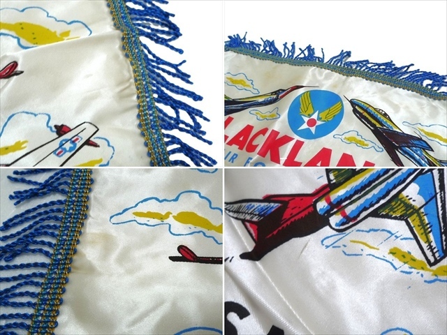 40~50’s ビンテージ USA製 ピローケース LACKLAND AIR FORCE BASE 空軍基地 カバー クッション 収納 スーべニア 土産 40×43.5cm 布 飾り